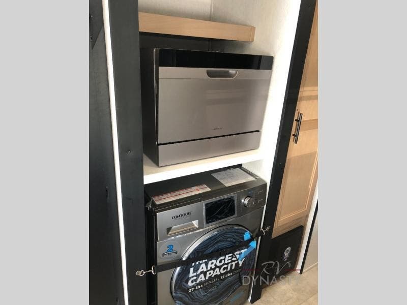 This model is similar to 16ML but larger! A bigger bathroom, king bed in the lower master, and a queen bed plus a twin bunk mat in the front loft. There is an 18 cu. ft. refrigerator so you can stock up for a week long vacation, a hide-a-bed sofa that can transform into added sleeping for guests, and a high top table with two stools to dine at. A ladder allows access into the upper front loft that is over the covered patio. The bathroom below is split with a shower on one side, and a private toilet area and sink opposite. And the view is amazing from just about anywhere inside.