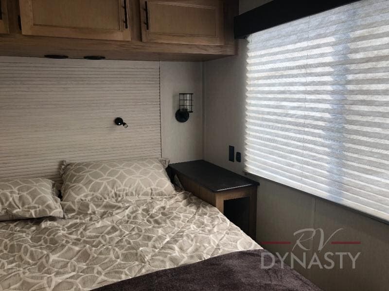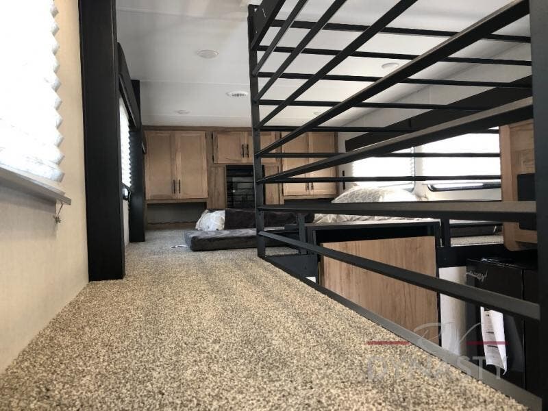 Enjoy comforts of home wherever you decide to roam in a Timberwolf destination trailer by Forest River. The seamless roofing membrane with heat reflectivity and power gear frame technology provide a durable foundation to your RV. You will also appreciate the exclusive solar thermo controlled reflective tinted safety glass windows, tire pressure monitors, and an on-demand tankless water heater to make extended stays easier than ever. Inside, the night shades will provide your crew with privacy, while the LED lights illuminate your space. There are also seamless countertops, along with a premium bedding ensemble and comforter, USB charging stations, a supersized central A/C unit, and many more comforts!