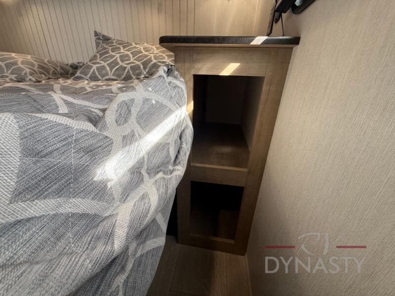 Enjoy comforts of home wherever you decide to roam in a Timberwolf destination trailer by Forest River. The seamless roofing membrane with heat reflectivity and power gear frame technology provide a durable foundation to your RV. You will also appreciate the exclusive solar thermo controlled reflective tinted safety glass windows, tire pressure monitors, and an on-demand tankless water heater to make extended stays easier than ever. Inside, the night shades will provide your crew with privacy, while the LED lights illuminate your space. There are also seamless countertops, along with a premium bedding ensemble and comforter, USB charging stations, a supersized central A/C unit, and many more comforts!