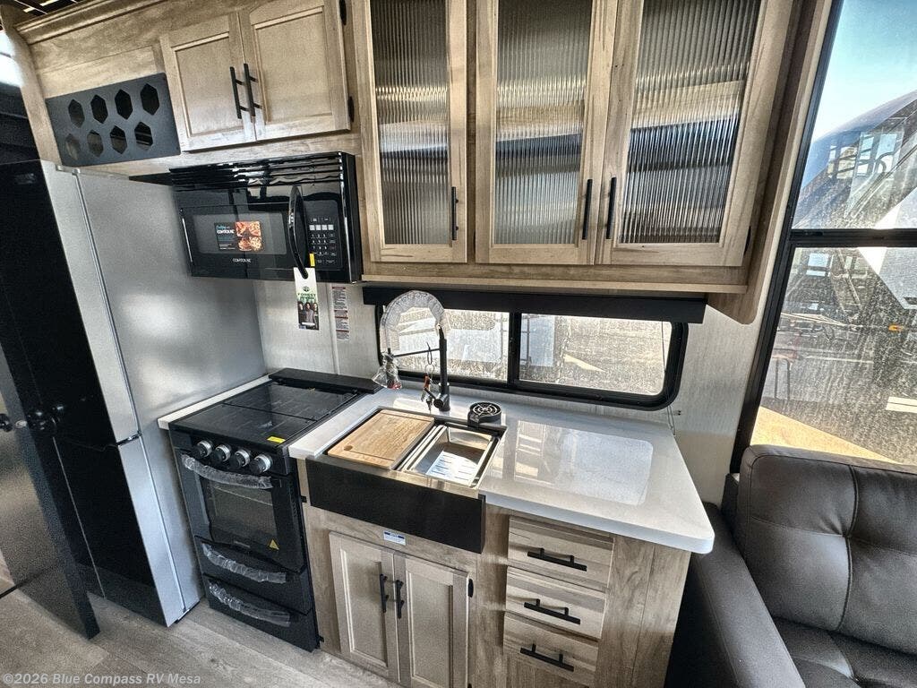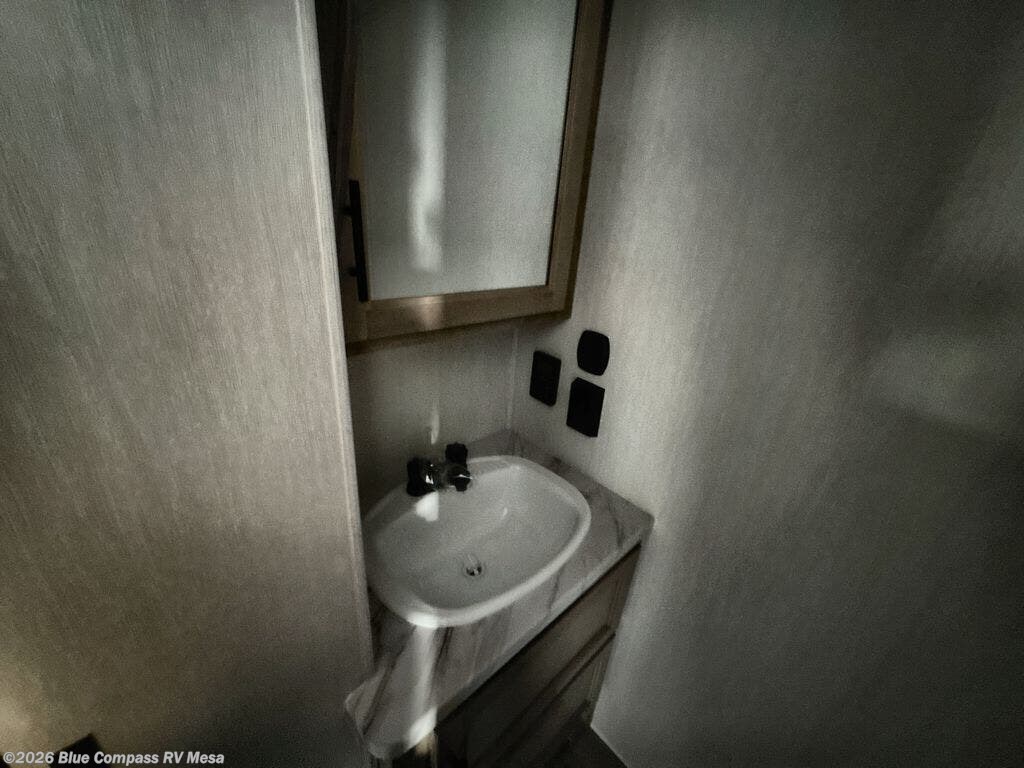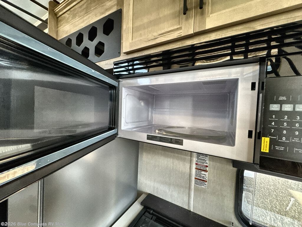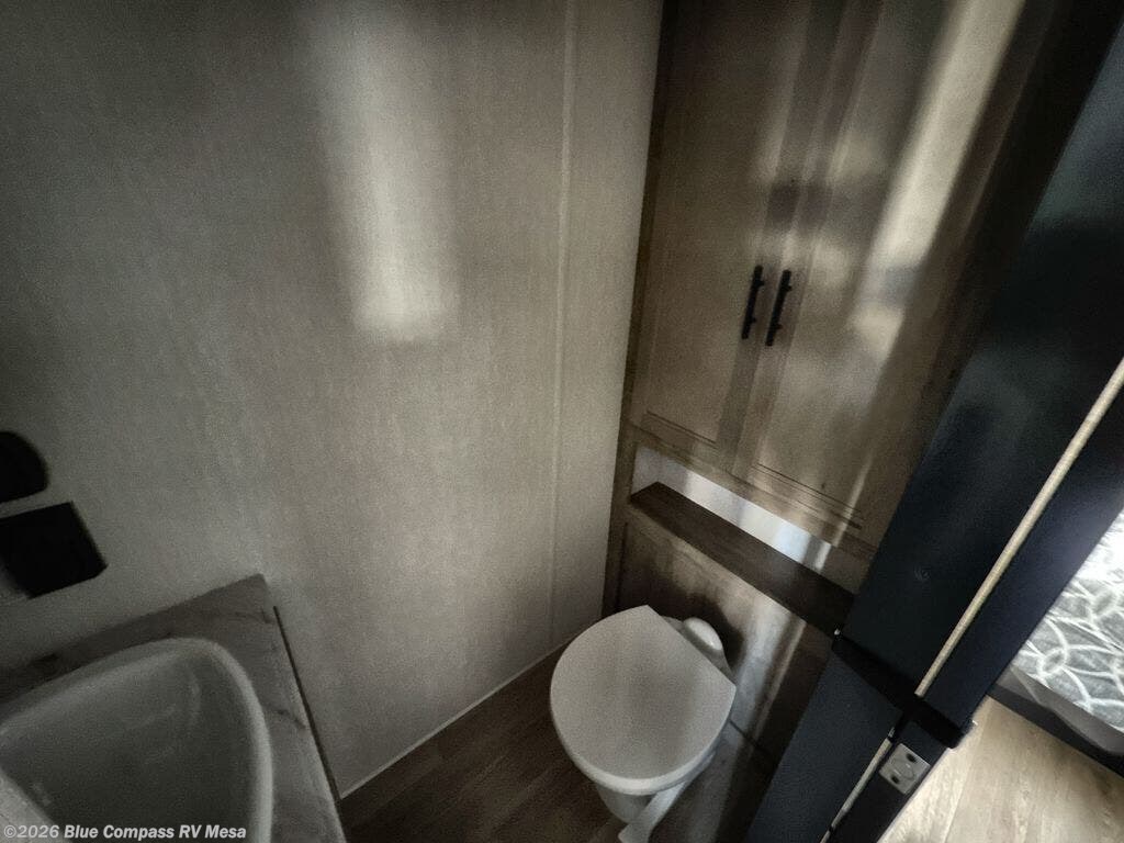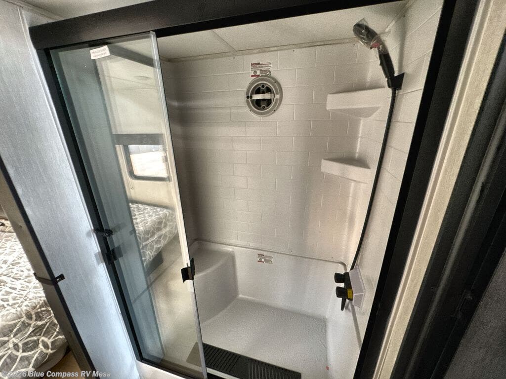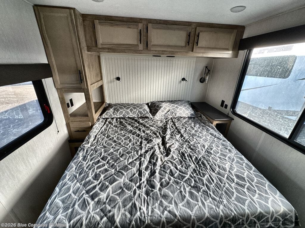 This model is similar to 16ML but larger! A bigger bathroom, RV king bed in the lower master, and a queen bed plus a twin bunk mat in the front loft. And the second loft can be utilized as extra sleeping space or storage space! There is an 18 cu. ft. refrigerator so you can stock up for a week long vacation, a hide-a-bed sofa that can transform into added sleeping for guests, and a high top table with two stools to dine at. The bathroom below is split with a shower on one side, and a private toilet area and sink opposite. And the view is amazing from just about anywhere inside.