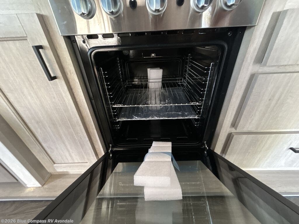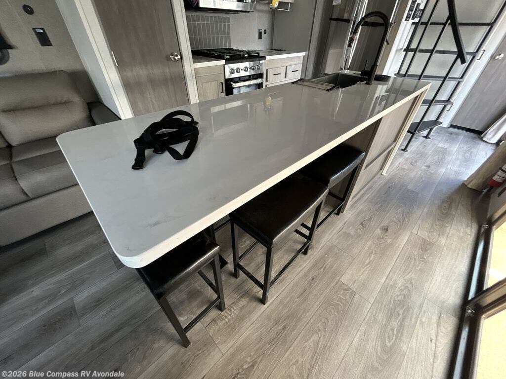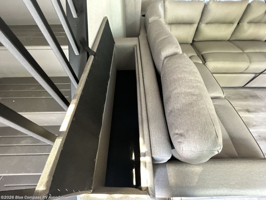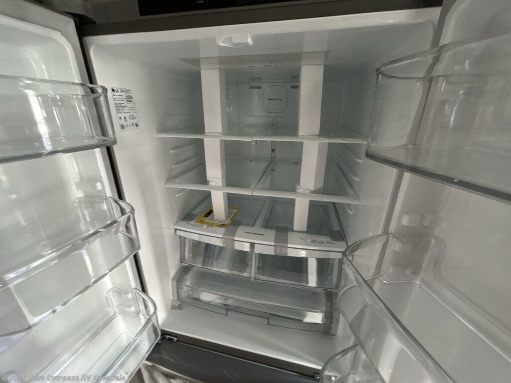 This model is similar to 16ML but larger! A bigger bathroom, RV king bed in the lower master, and a queen bed plus a twin bunk mat in the front loft. And the second loft can be utilized as extra sleeping space or storage space! There is an 18 cu. ft. refrigerator so you can stock up for a week long vacation, a hide-a-bed sofa that can transform into added sleeping for guests, and a high top table with two stools to dine at. The bathroom below is split with a shower on one side, and a private toilet area and sink opposite. And the view is amazing from just about anywhere inside.