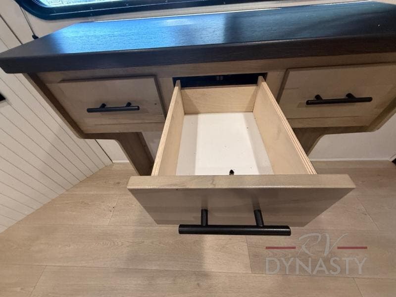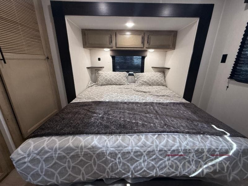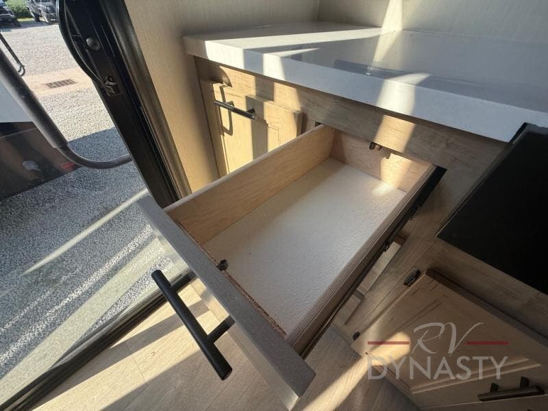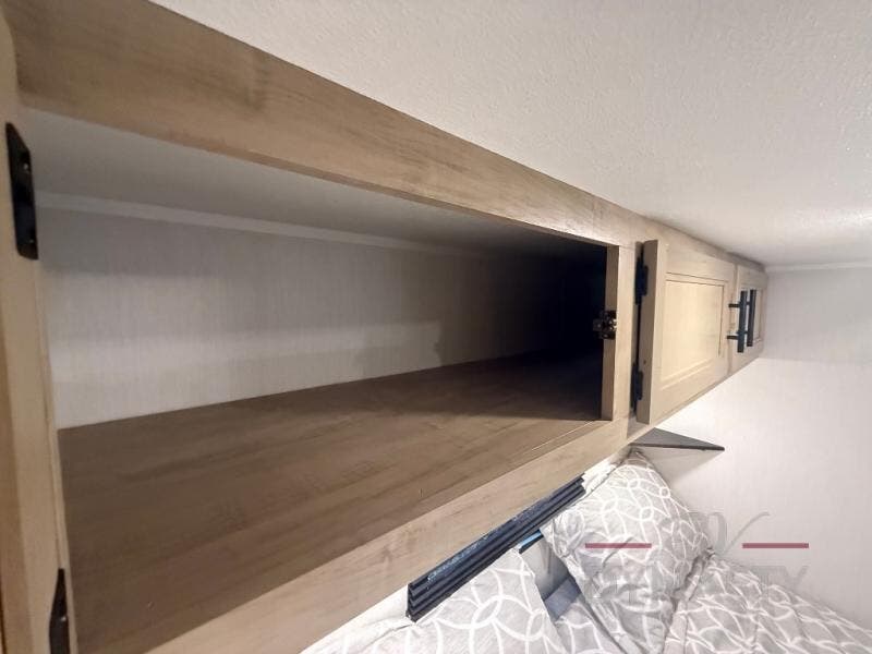 Enjoy comforts of home wherever you decide to roam in a Timberwolf destination trailer by Forest River. The seamless roofing membrane with heat reflectivity and power gear frame technology provide a durable foundation to your RV. You will also appreciate the exclusive solar thermo controlled reflective tinted safety glass windows, tire pressure monitors, and an on-demand tankless water heater to make extended stays easier than ever. Inside, the night shades will provide your crew with privacy, while the LED lights illuminate your space. There are seamless countertops, along with a premium bedding ensemble and comforter, USB charging stations, a supersized central A/C unit, and many more comforts!