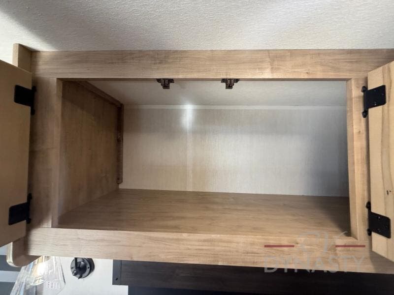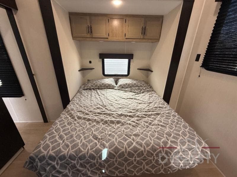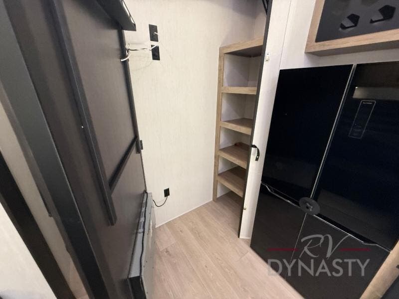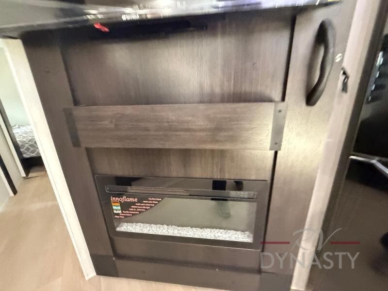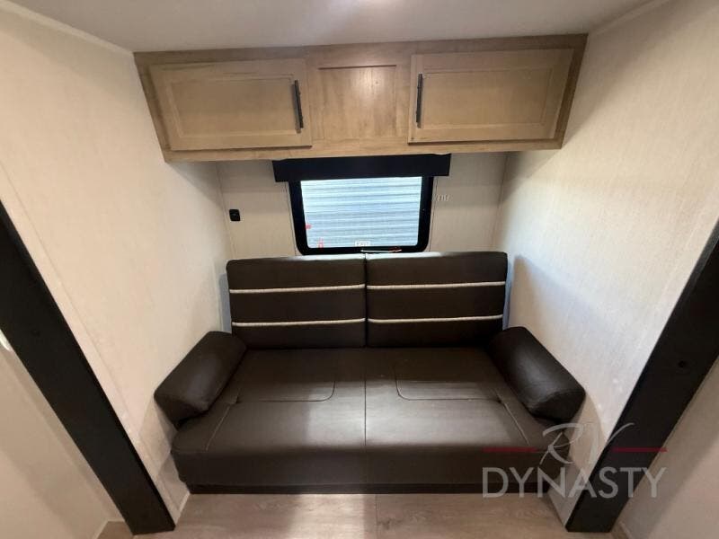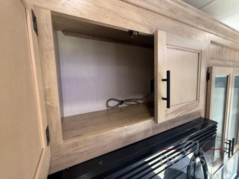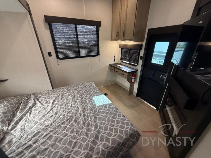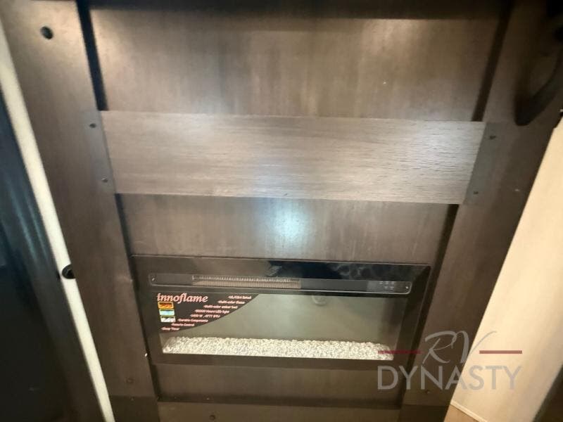 If you plan to camp with a larger group, this destination trailer will be perfect for you! There is a front private bedroom with a king bed slide out, a desk with a shoe rack underneath, plus an entertainment center with a fireplace to make it more cozy! Your guests can claim the rear den with a sofa slide out, plenty of storage, and their own full bath! There is even a loft above this room with two bunk mats and cabinets for storage. And the second full bath is up front right next to the bedroom for convenience. In the morning, everyone can meet in the combined kitchen and living area as the chef make breakfast in the full kitchen. There is a U-shaped dinette and hide-a-bed sofa within the large slide out here, plus an entertainment center with a fireplace and hidden walk-in pantry!