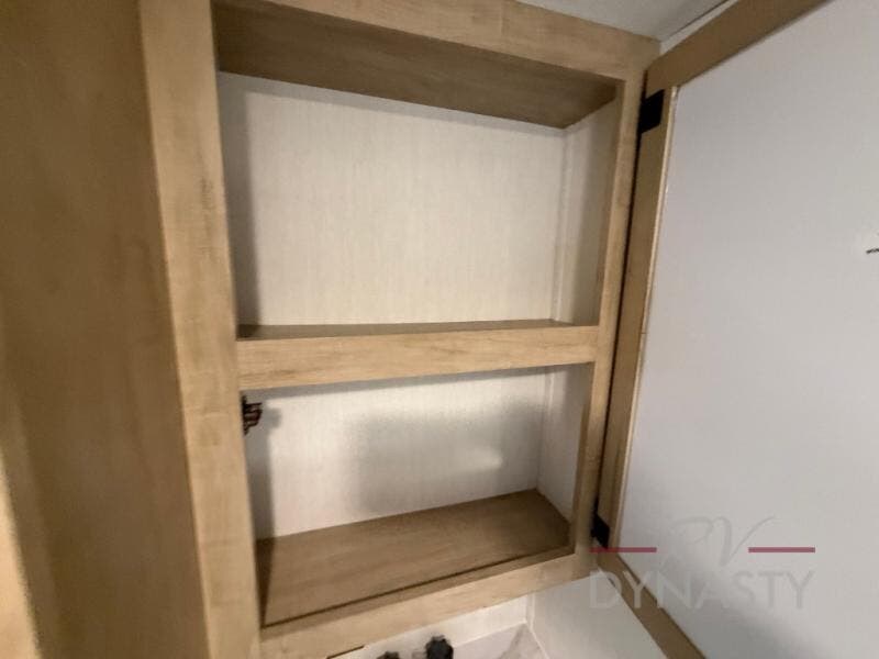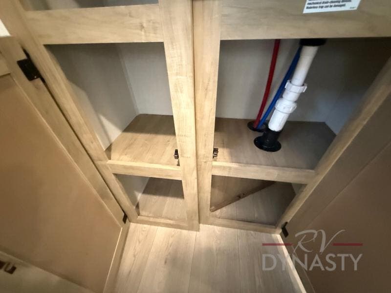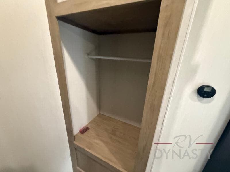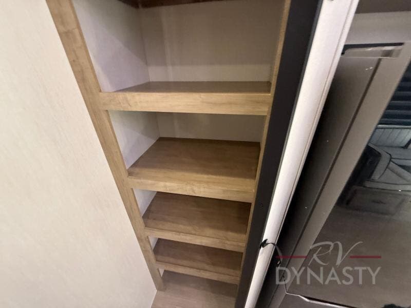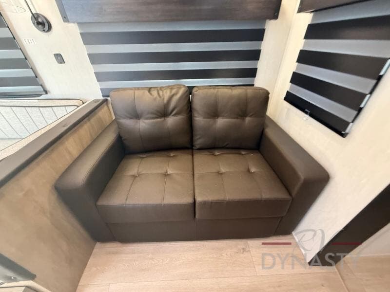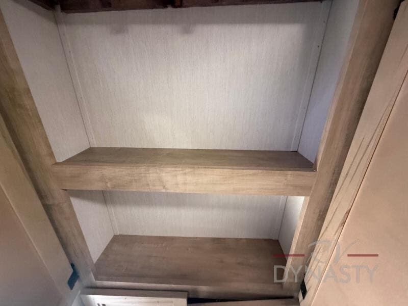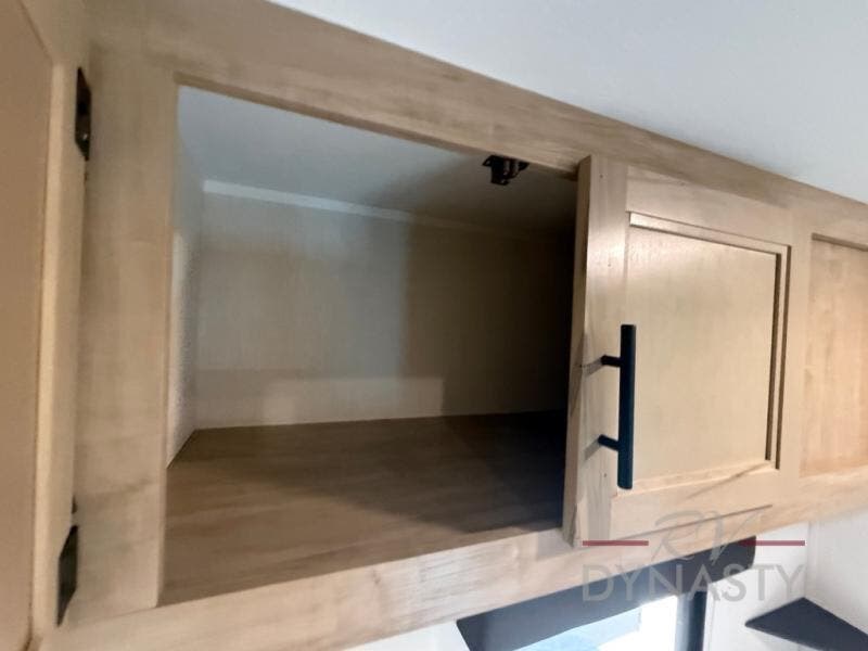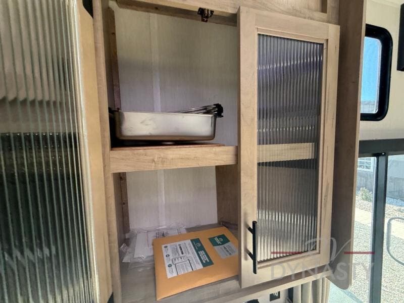 If you plan to camp with a larger group, this destination trailer will be perfect for you! There is a front private bedroom with a king bed slide out, a desk with a shoe rack underneath, plus an entertainment center with a fireplace to make it more cozy! Your guests can claim the rear den with a sofa slide out, plenty of storage, and their own full bath! There is even a loft above this room with two bunk mats and cabinets for storage. And the second full bath is up front right next to the bedroom for convenience. In the morning, everyone can meet in the combined kitchen and living area as the chef make breakfast in the full kitchen. There is a U-shaped dinette and hide-a-bed sofa within the large slide out here, plus an entertainment center with a fireplace and hidden walk-in pantry!