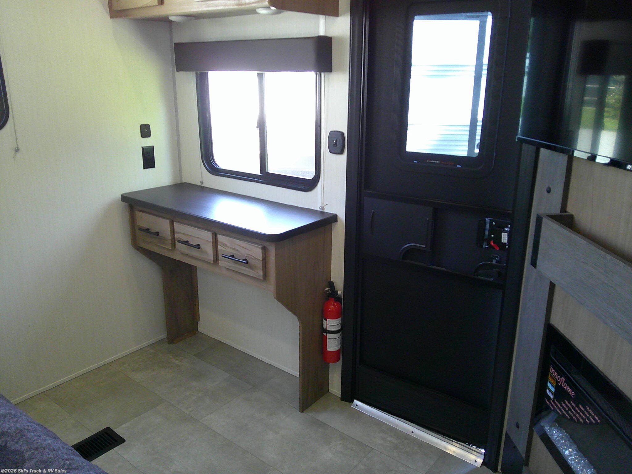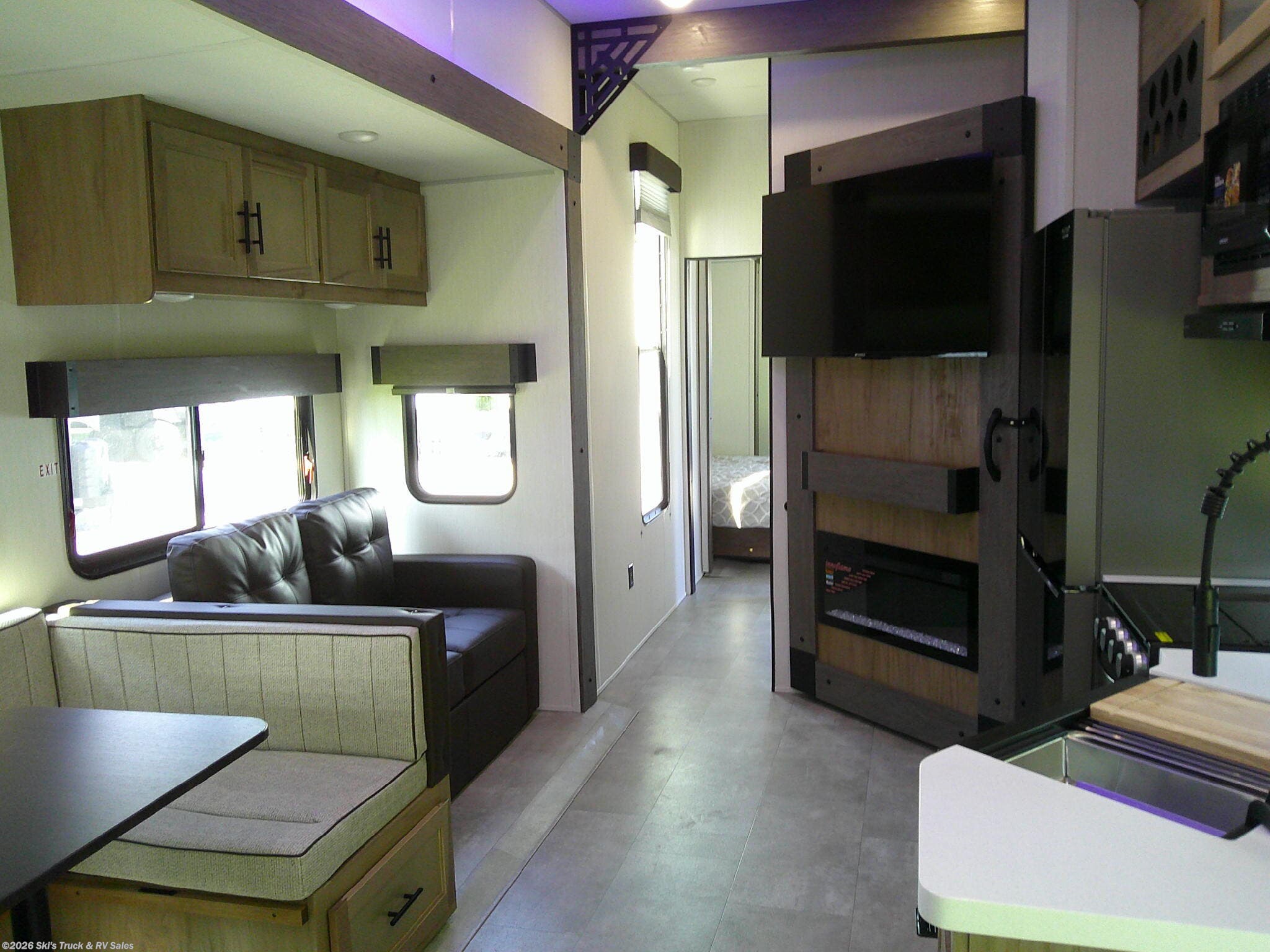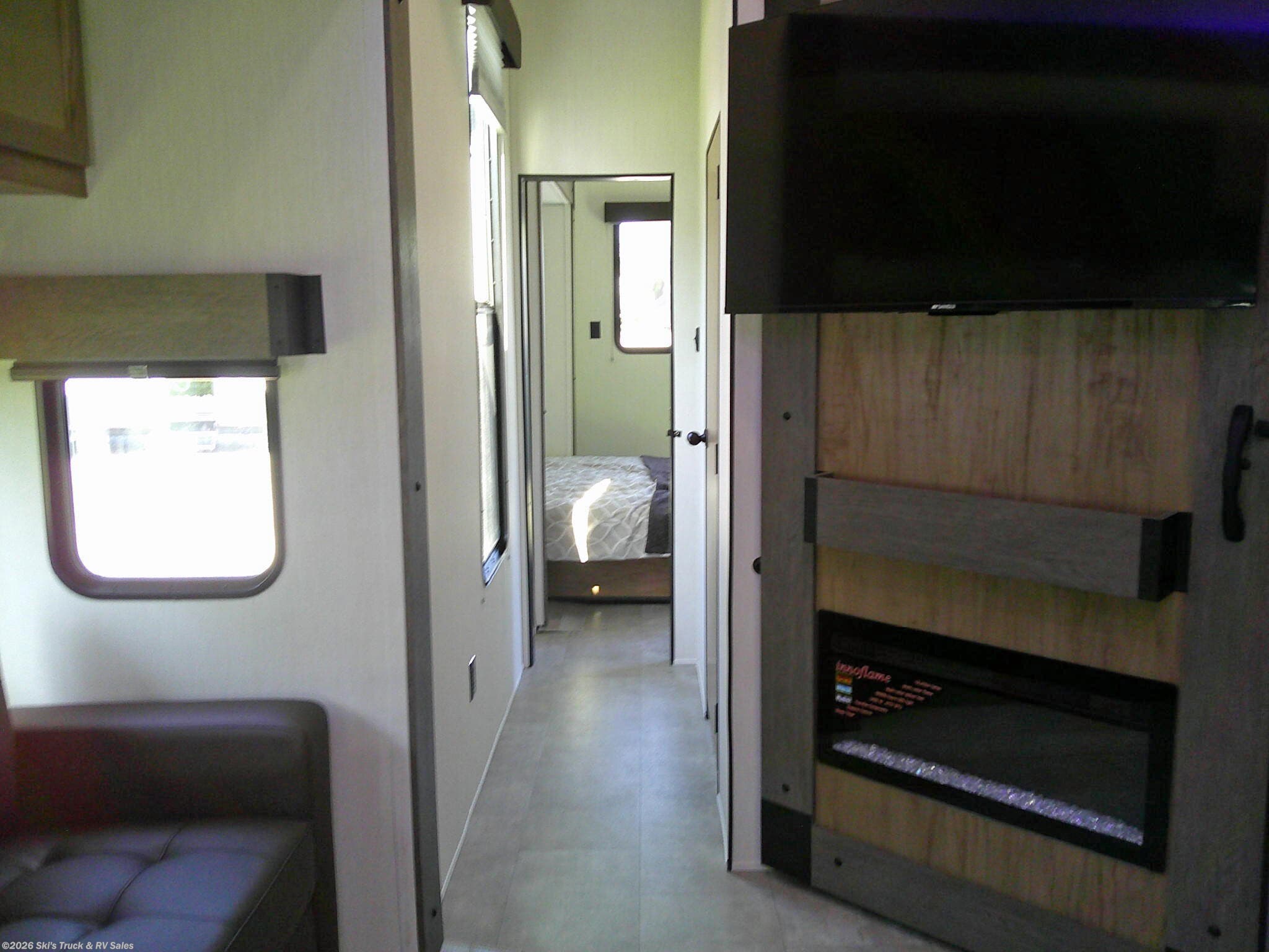 2026 Forest River Cherokee Timberwolf 39DC Destination Trailer; *THIS UNIT AVAILABLE TO ORDER* 41 Foot; 3 Slides with Toppers; Sleeps 6; Dry Weight: 11,969 Lbs.; 50 Amp; Manual Tongue and Stabilizer Jacks; 40 Gal. Fresh Water Cap.; 38 Gal. Black Water Cap.; 38 Gal. Gray Water Cap.; Two 30 Lbs. Propane Tanks with Outside Port; Two ACs: 15,000 / 15,000 BTUs; 30,000 BTU Furnace; 15 C.F. (110V) Refrigerator; On Demand Water Heater; Microwave; 3-Burner Stove/Oven; Three TV Jacks; Three 50 In. TVs; Speakers; Two Fireplaces; Ceiling Fan; Pantry; Stainless Steel Farm Sink; U Shaped Dinette; Trifold Sofa; Jack-knife Sofa in Bunk Room; King Bed; Two Full Baths: One with Shower; One with Tub/Shower; Loft; Sliding Door; Patio; 21 Foot Power Awning with LED Lights; Outside Grill; Outside Shower; Exterior Storage; Grab Handle; Roof Ladder Prep.; Magnetic Door Holders; Battery Disconnect; Black Tank Flush; Tank Heaters; Tinted Windows; Zebra Shades; One Year Limited Warranty; Financing Available; Great Destination Travel Trailer with LOFT for the Price: $47,995. Call Skis Truck & RV Sales at 765-344-1111 or visit us at for more information.