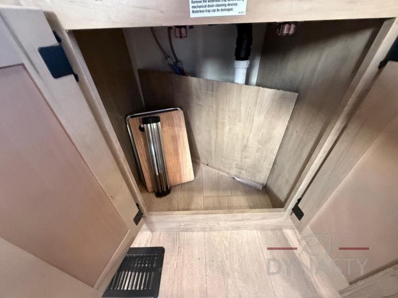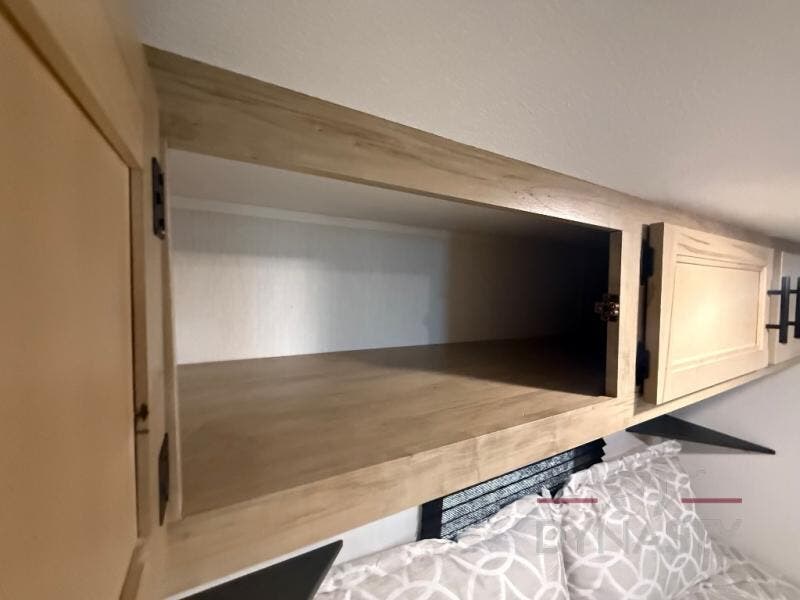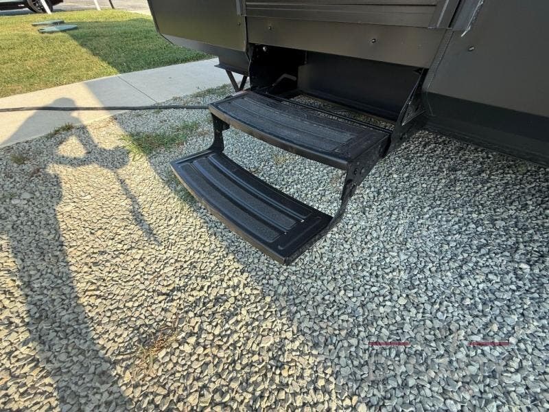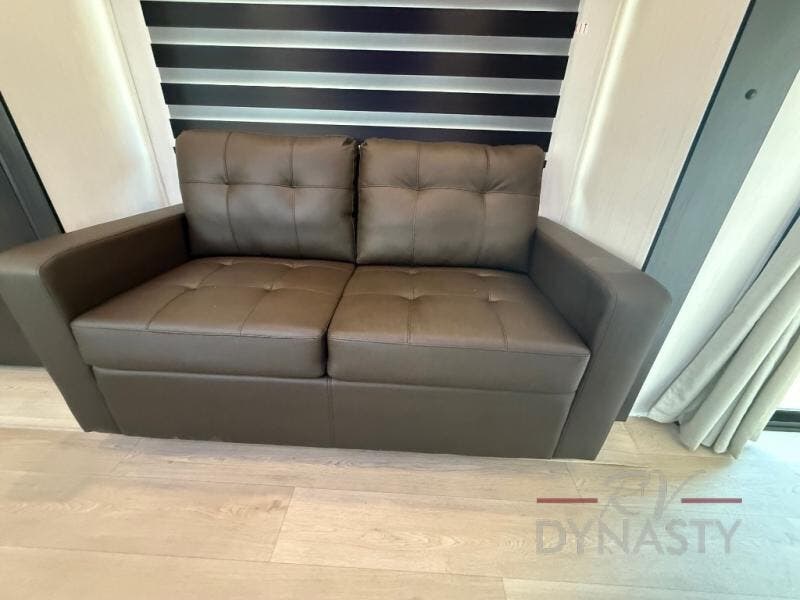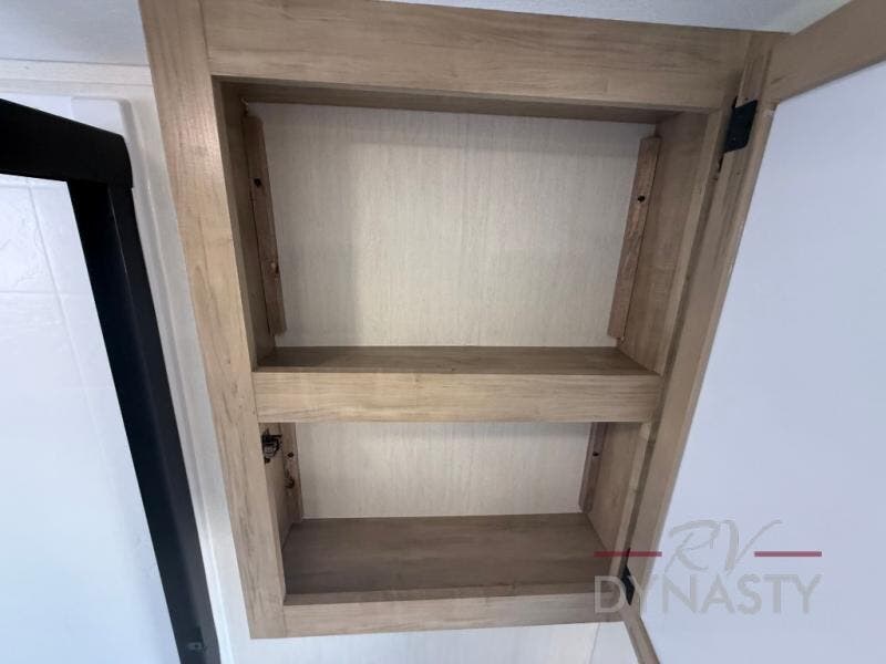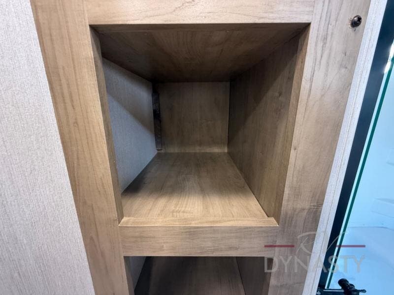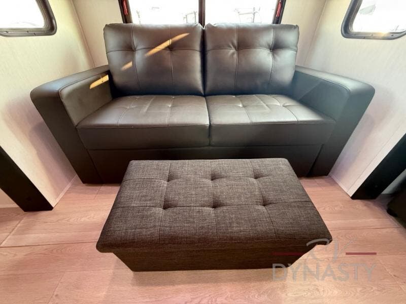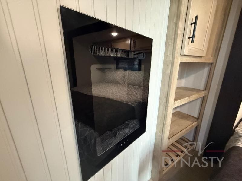 It won't be hard to find comfort in this front kitchen destination trailer! There is ample counter space to prep meals, a free-standing dinette with a slide out, plus a large pantry and 18 cu. ft. refrigerator for food storage. The bar top with stools overlooks the middle living area, where you'll also find dual hide-a-bed sofas and an entertainment center with a fireplace. The full bath includes a shower with a seat for more comfort, and one of the dual entry doors is right across from the bath so you can quickly get back outside. Head up the steps to the dual loft areas with two bunk mats and cabinets on one side, and an open area on the other, perfect for a play room or extra storage! And under the loft you'll find the rear private bedroom with a king bed slide, a wardrobe and an entertainment center, plus washer and dryer prep if you want to add these appliances!