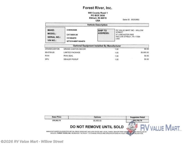 Request More Info on this 2026 Forest River Cherokee Timberwolf 39DK Offered for sale by RV Value Mart - Willow Street