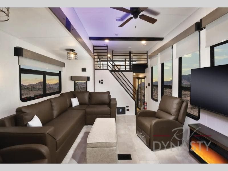 Spacious and comfortable is how you will describe this destination travel trailer featuring triple slides, two full baths, and a spacious combined kitchen and living area thanks to the large slide here featuring a free standing dinette and sofa. The kitchen includes everything you need to comfortably cook while you are away, and allows you to make meals for your family just like at home. There is a large pantry where you can keep plenty of snacks and dry goods for your trip. In the rear of the coach, there is a private bedroom featuring a queen bed slide for added space, comfortable sleeping, as well as ample storage between a dresser and wardrobe for your clothing. In the very back, a master suite bath featuring a vanity with sink, a shower with a seat, and linen storage for your towels and toiletries. This front bedroom also features a king bed slide!