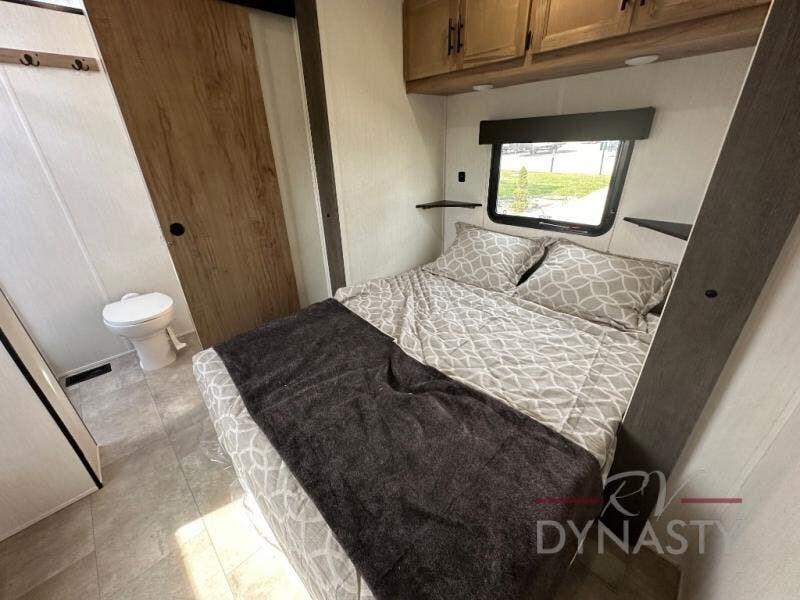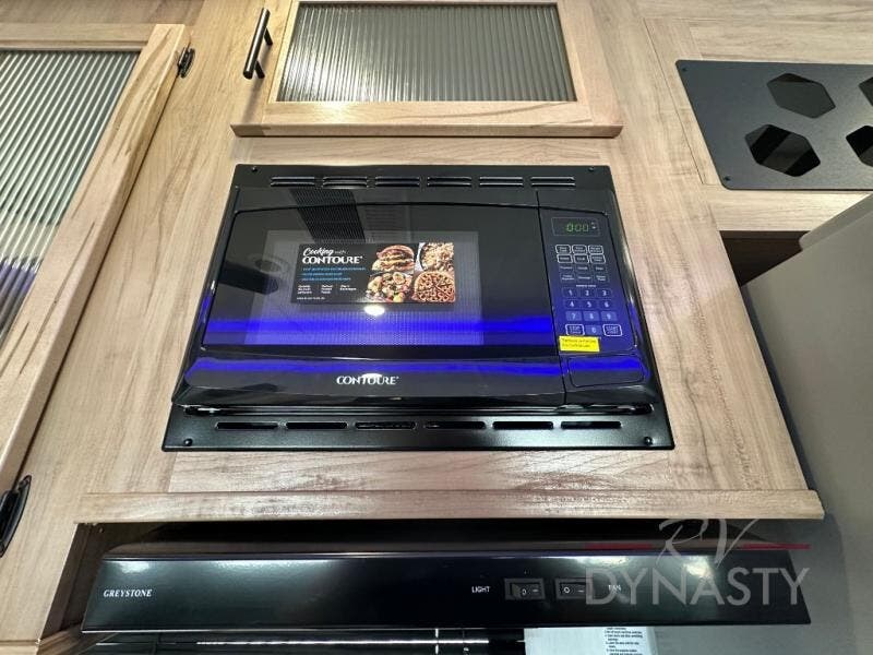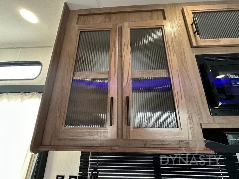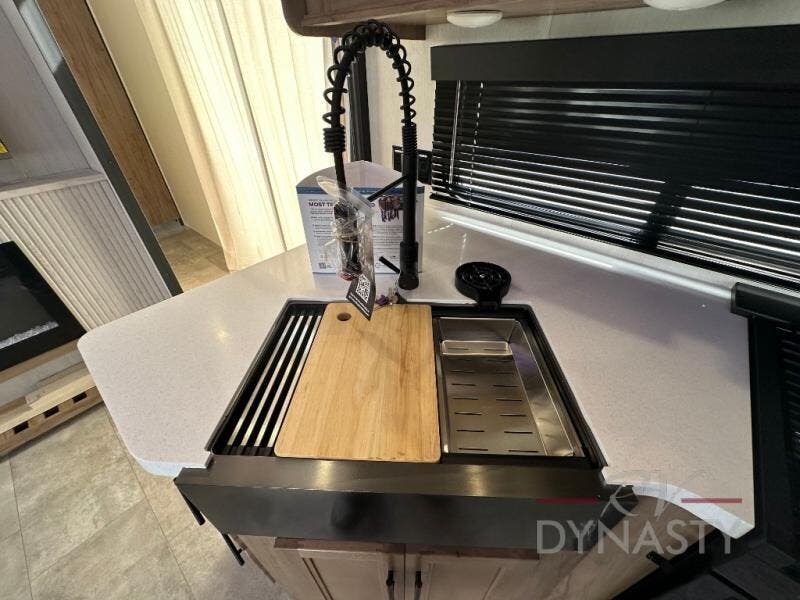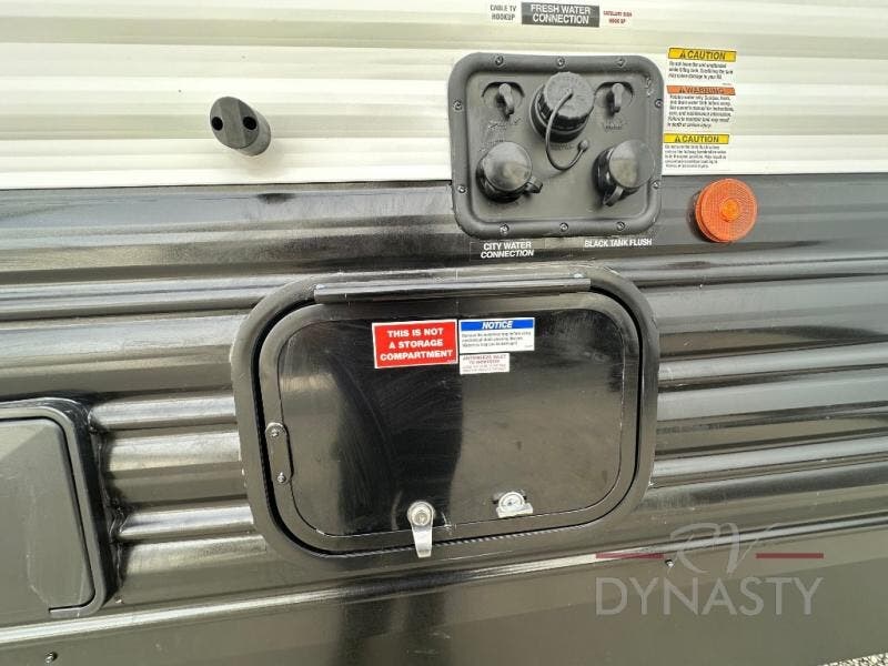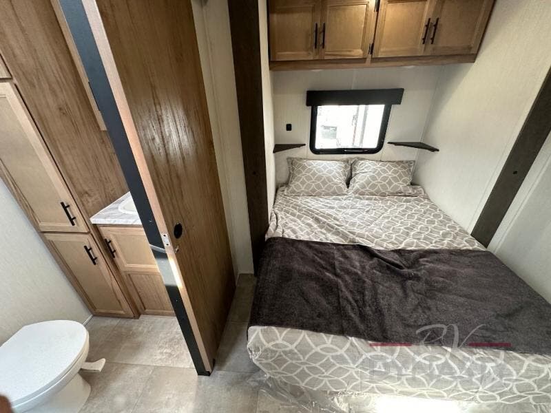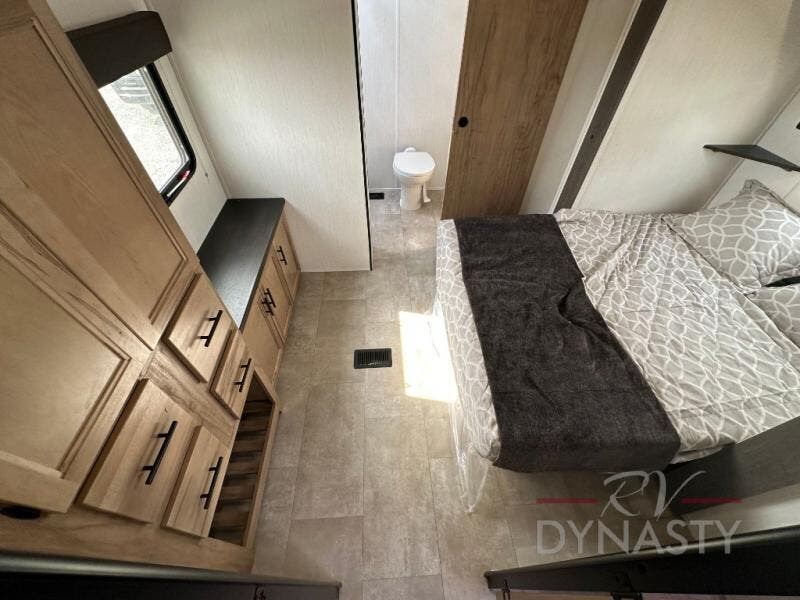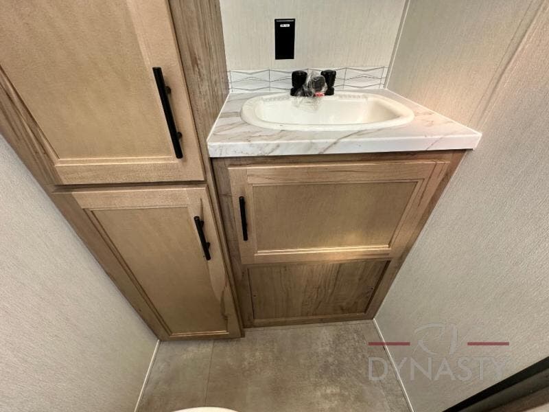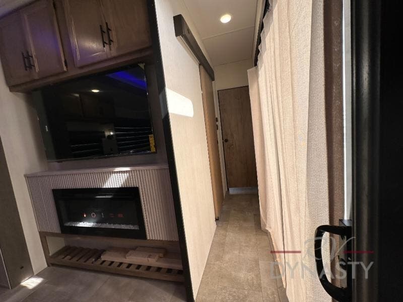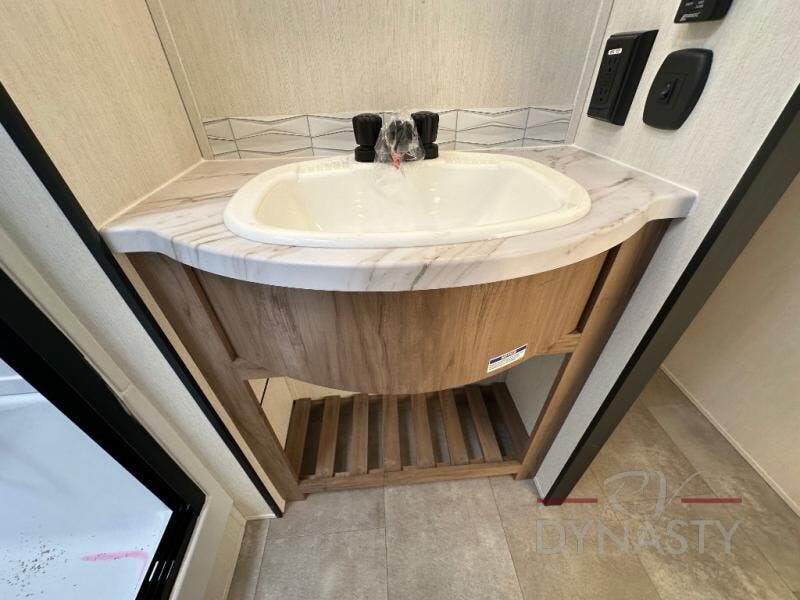 Spacious and comfortable is how you will describe this destination travel trailer featuring triple slides, two full baths, and a spacious combined kitchen and living area thanks to the large slide here featuring a free standing dinette and sofa. The kitchen includes everything you need to comfortably cook while you are away, and allows you to make meals for your family just like at home. There is a large pantry where you can keep plenty of snacks and dry goods for your trip. In the rear of the coach, there is a private bedroom featuring a queen bed slide for added space, comfortable sleeping, as well as ample storage between a dresser and wardrobe for your clothing. In the very back, a master suite bath featuring a vanity with sink, a shower with a seat, and linen storage for your towels and toiletries. This front bedroom also features a king bed slide!