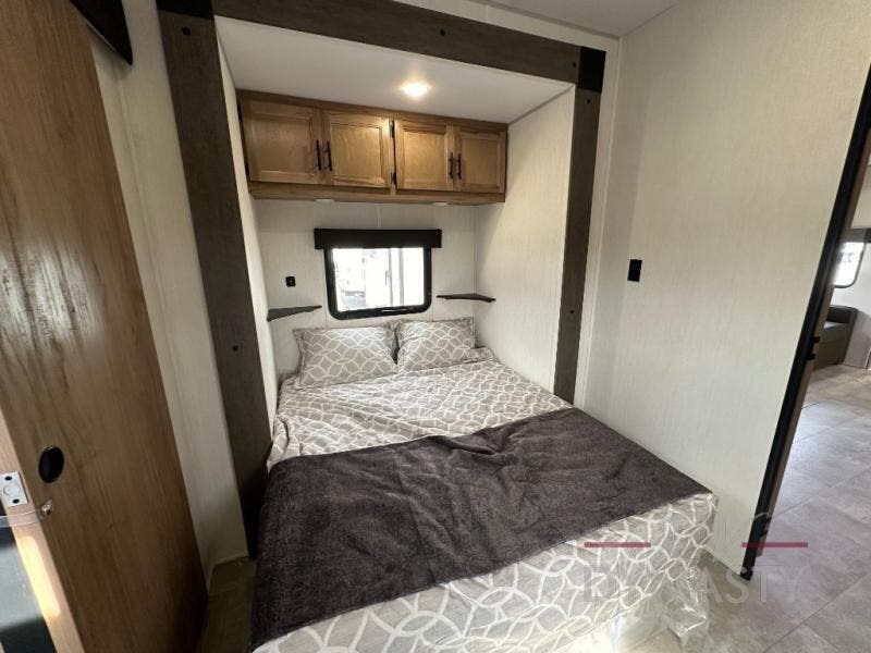 Enjoy comforts of home wherever you decide to roam in a Timberwolf destination trailer by Forest River. The seamless roofing membrane with heat reflectivity and power gear frame technology provide a durable foundation to your RV. You will also appreciate the exclusive solar thermo controlled reflective tinted safety glass windows, tire pressure monitors, and an on-demand tankless water heater to make extended stays easier than ever. Inside, the night shades will provide your crew with privacy, while the LED lights illuminate your space. There are seamless countertops, along with a premium bedding ensemble and comforter, USB charging stations, a supersized central A/C unit, and many more comforts!