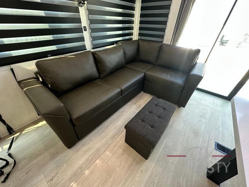 Enjoy comforts of home wherever you decide to roam in a Timberwolf destination trailer by Forest River. The seamless roofing membrane with heat reflectivity and power gear frame technology provide a durable foundation to your RV. You will also appreciate the exclusive solar thermo controlled reflective tinted safety glass windows, tire pressure monitors, and an on-demand tankless water heater to make extended stays easier than ever. Inside, the night shades will provide your crew with privacy, while the LED lights illuminate your space. There are seamless countertops, along with a premium bedding ensemble and comforter, USB charging stations, a supersized central A/C unit, and many more comforts!