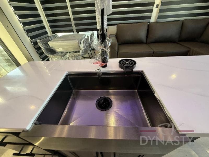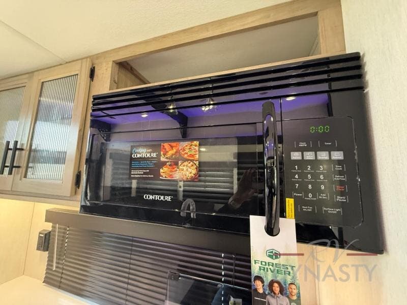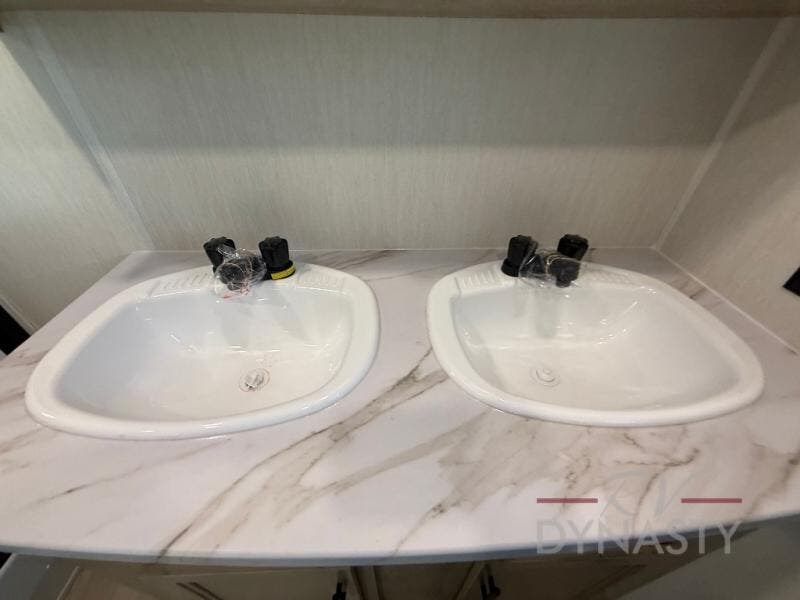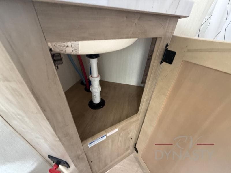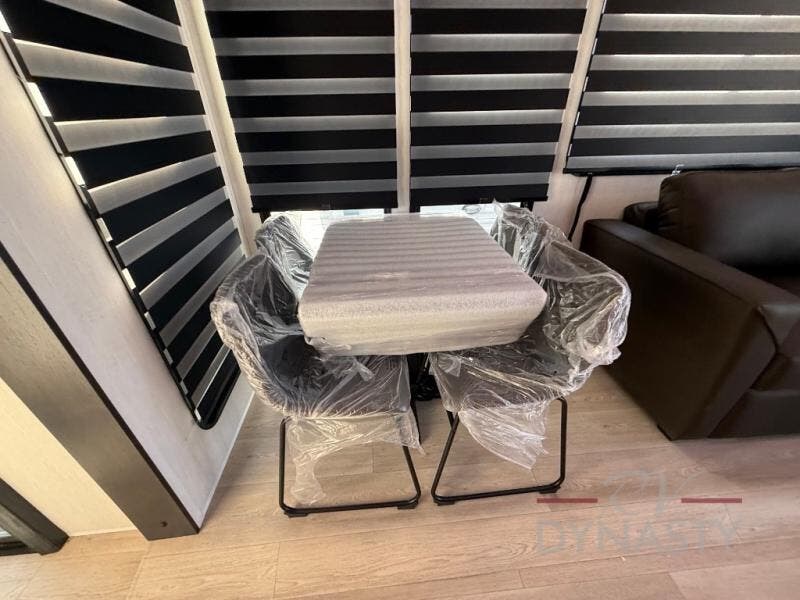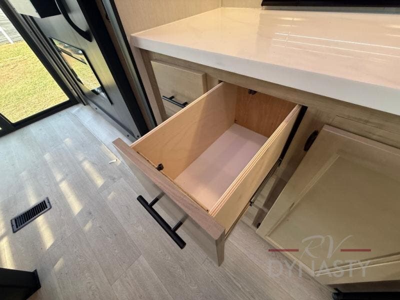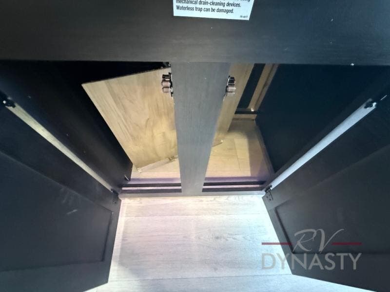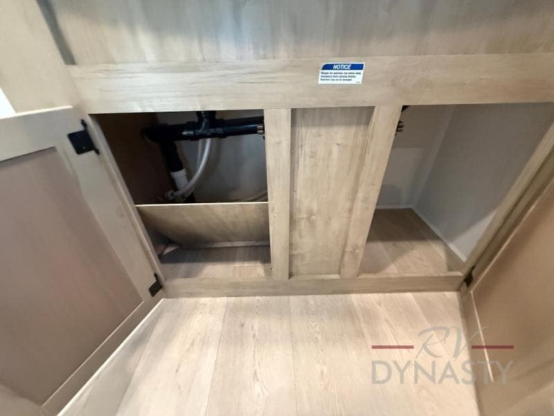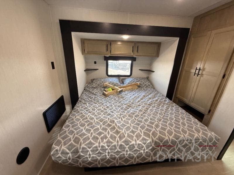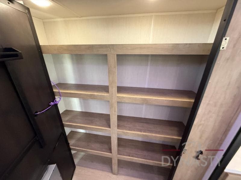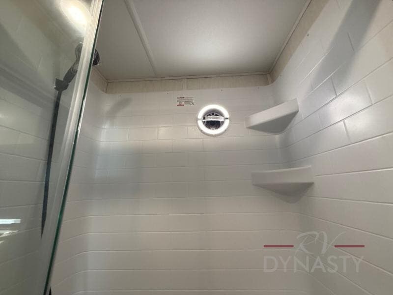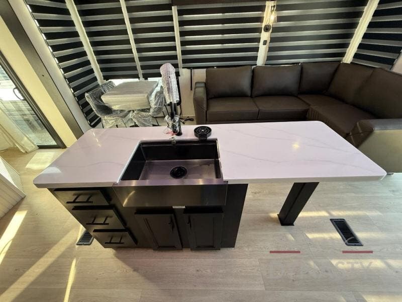 Choosing this destination trailer as your next RV won't be a hard decision! You can enter in through the front bath that includes dual bath sinks, a shower with a seat, and a medicine cabinet for your necessities. The master bedroom is connected to this bath for added convenience, and you're sure to enjoy the bedroom fireplace and king bed slide out. Just outside this room are the stairs that lead to the loft where you'll find two queen-size beds on one side and an open area where the kids can play or to use as storage. A second full bath is found next the stairs on the lower level, and there is a wardrobe with washer/dryer prep if you want to add these appliances. Everyone will love to join together and visit in the combined kitchen and living room. Here, you'll find a free-standing dinette, an L-shaped sofa, a kitchen island with two chairs, plus an entertainment center with a fireplace! The hidden pantry behind the fireplace will let you keep food stocked, and the rear patio doors will let natural light in!
