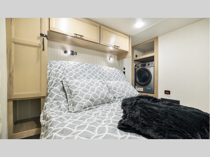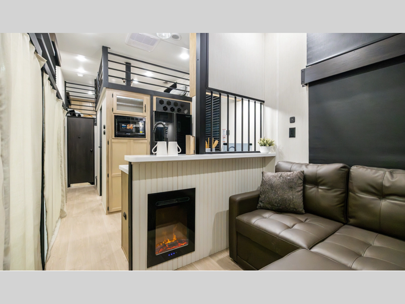 Nestled in a tranquil setting, this destination trailer offers the perfect blend of comfort and relaxation. The heart of the trailer is the main space, where you can chill on the L-shaped sofa or prep meals in the kitchen. The full bathroom is a refreshing oasis, and the kitchen is equipped with a fridge, microwave, pantry, and sink—everything you need to keep you fueled and happy. Furthermore, the rear king bed is a luxurious retreat, perfect for unwinding after a big day. Finally, up in the loft, the queen bed is a cozy nest with a unique view, making this RV great for reading, relaxing, or catching some Z's.