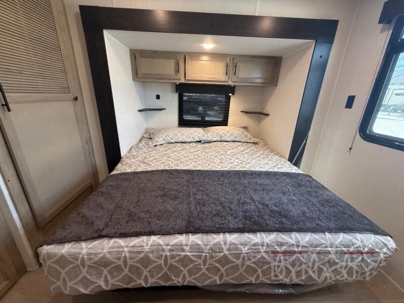 Enjoy comforts of home wherever you decide to roam in a Cherokee Timberwolf Black Label destination trailer by Forest River. The seamless roofing membrane with heat reflectivity provide a durable foundation to your RV. You will also appreciate the exclusive solar thermo controlled reflective tinted safety glass windows, and an on-demand tankless water heater to make extended stays easier than ever. Inside, the night shades will provide your crew with privacy, while the fireplace will create a cozy atmosphere. There are also seamless countertops, along with a premium bedding ensemble and comforter, USB charging stations, and a supersized central A/C unit. The Black Label Package features hung fiberglass gel coat sided walls, Thermo-Foil Arctic insulation, and a frameless window package. There are also upgraded reading lights, designer cushion fabric, and upgraded solid surface countertops to have you feeling right at home!