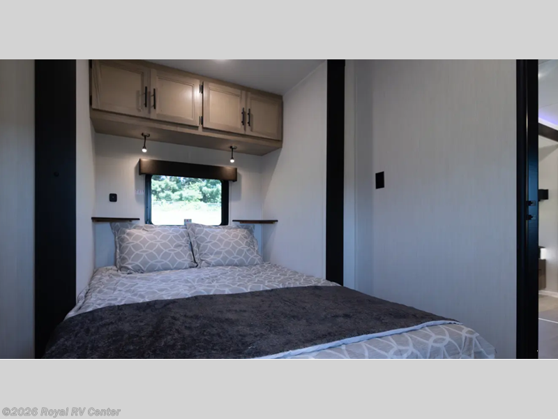 Spacious and comfortable is how you will describe this destination travel trailer featuring triple slides, two full baths, and a spacious combined kitchen and living area thanks to the large slide here featuring a free standing dinette and hide-a-bed sofa. The kitchen includes everything you need to comfortably cook while you are away, and allows you to make meals for your family just like at home. There is a large pantry where you can keep plenty of snacks and dry goods for your trip. Two full baths is a convenience especially at night with the front bathroom accessible to all guests just to the right of the main entry door. In the rear of the coach, there is a private bedroom featuring a queen bed slide for added roominess, comfortable sleeping, as well as ample storage between a dresser and wardrobe for your clothing. In the very back, a master suite bath featuring a vanity with a sink, a shower with a seat, and linen storage for your towels and toiletries. The front private bedroom includes a king bed slide, spacious wardrobe and fireplace.