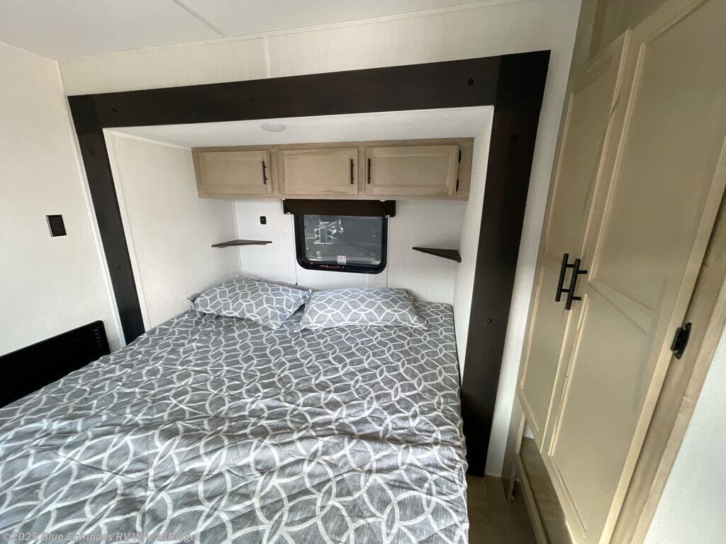 Choosing this destination trailer as your next RV won't be a hard decision! You can enter in through the front bath that includes dual bath sinks, a shower with a seat, and a medicine cabinet for your necessities. The master bedroom is connected to this bath for added convenience, and you're sure to enjoy the bedroom fireplace and king bed slide out. Just outside this room are the stairs that lead to the loft where you'll find two queen-size beds on one side and an open area where the kids can play or to use as storage. A second full bath is found next the stairs on the lower level, and there is a wardrobe with washer/dryer prep if you want to add these appliances. Everyone will love to join together and visit in the combined kitchen and living room. Here, you'll find a free-standing dinette, an L-shaped sofa, a kitchen island with two chairs, plus an entertainment center with a fireplace! The hidden pantry behind the fireplace will let you keep food stocked, and the rear patio doors will let natural light in!