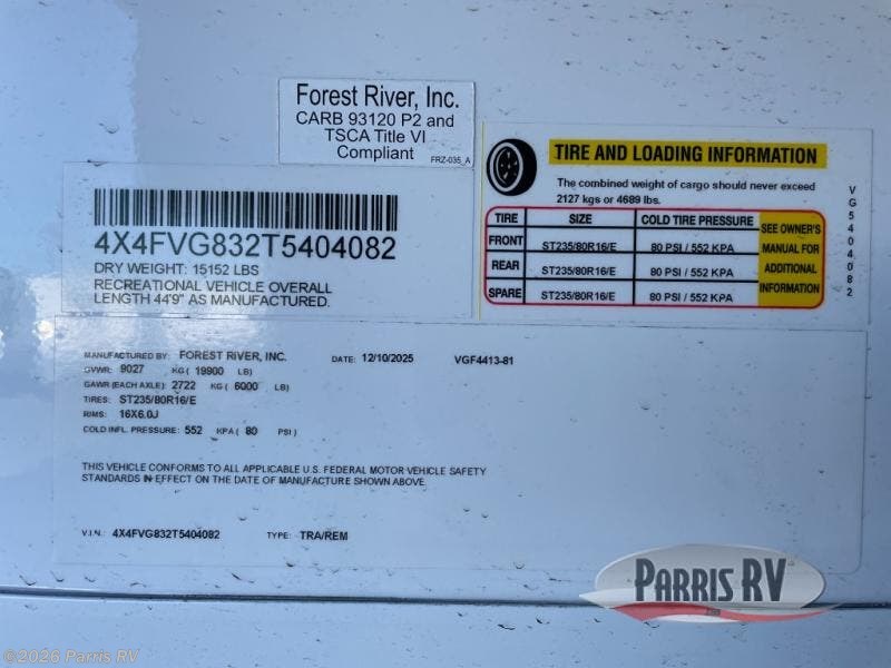 2026 Forest River Cherokee Vengeance 4413 Specifications