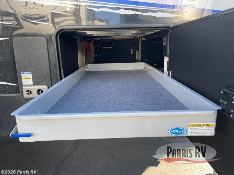 With any Cherokee Vengeance toy hauler fifth wheel by Forest River, you will find functionality and refined comfort at every turn! Each model features an 8' 6" wide body construction, high-gloss gelcoat fiberglass, and NTXT composite substrate for added durability. The MORryde 3000 suspension will make towing easier than ever, and there are additional MORryde features such as a hitch, extended handrail at the garage and entry door, and a MORryde pull-out tray in the exterior compartment. The 5,000 lb. tie-downs will help keep your gear secure, and the 30-gallon fuel station will keep your toys ready to go. Each toy hauler also includes luxury solid surface countertops throughout, luxury upgraded furniture, dual roller day/night shades in the living room, a glass shower enclosure, and LED lighting throughout to name just a few luxury features!