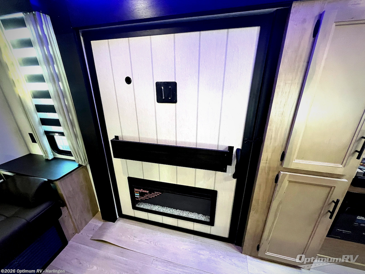You'll love every minute spent in this double slide out travel trailer. You can relax on the rear sofa or dual lounge chairs, play a game at the booth dinette, and enjoy the glow of the fireplace. The chef of your group will appreciate the kitchen island, air fryer, plus refrigerator and pantry for food storage. A dual entry bath will create a front master bedroom, complete with an RV king bed and a bedside wardrobe to keep your space tidy.