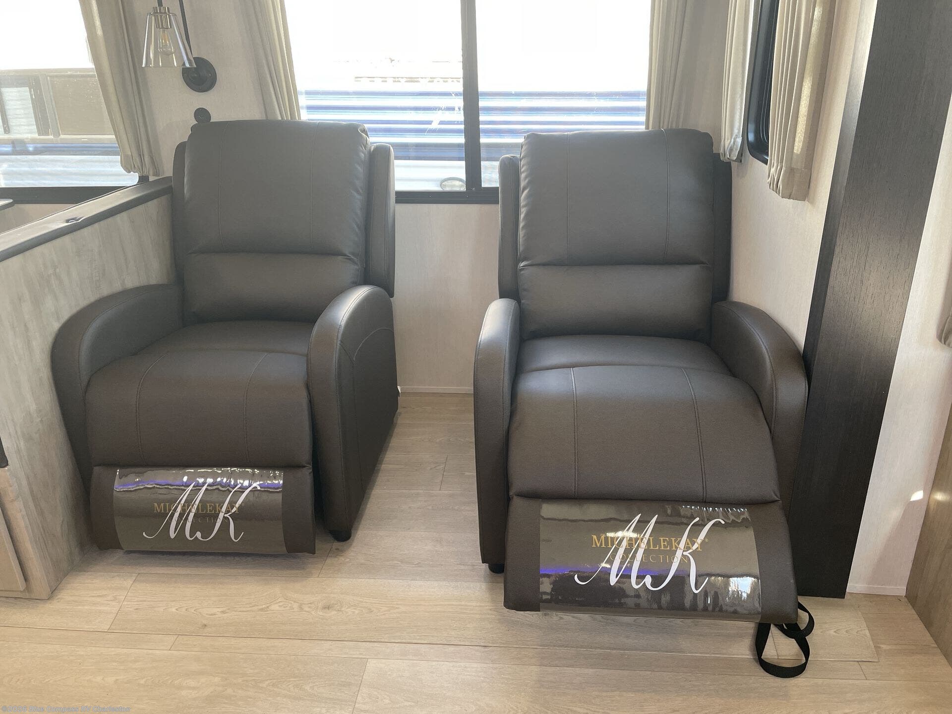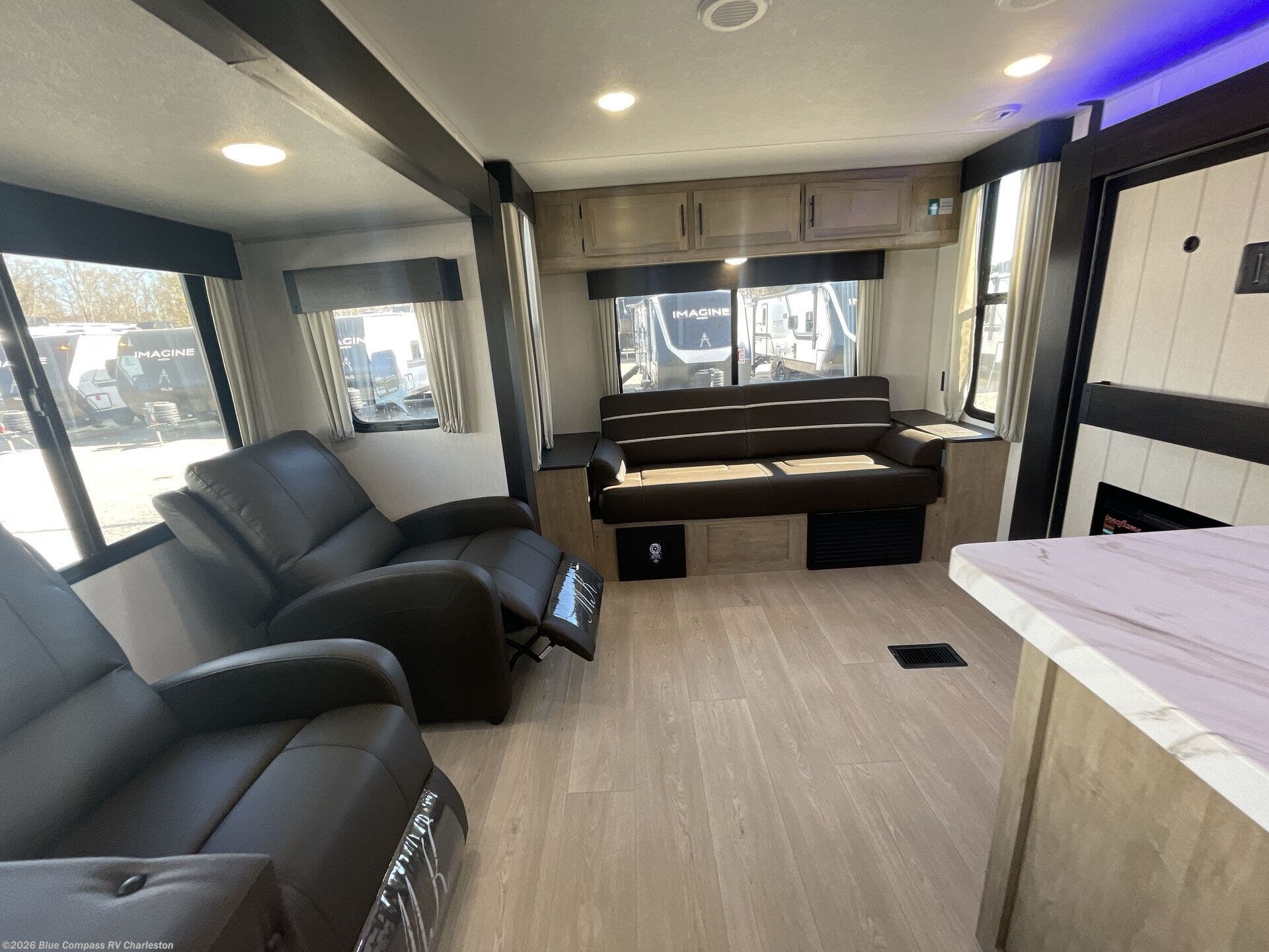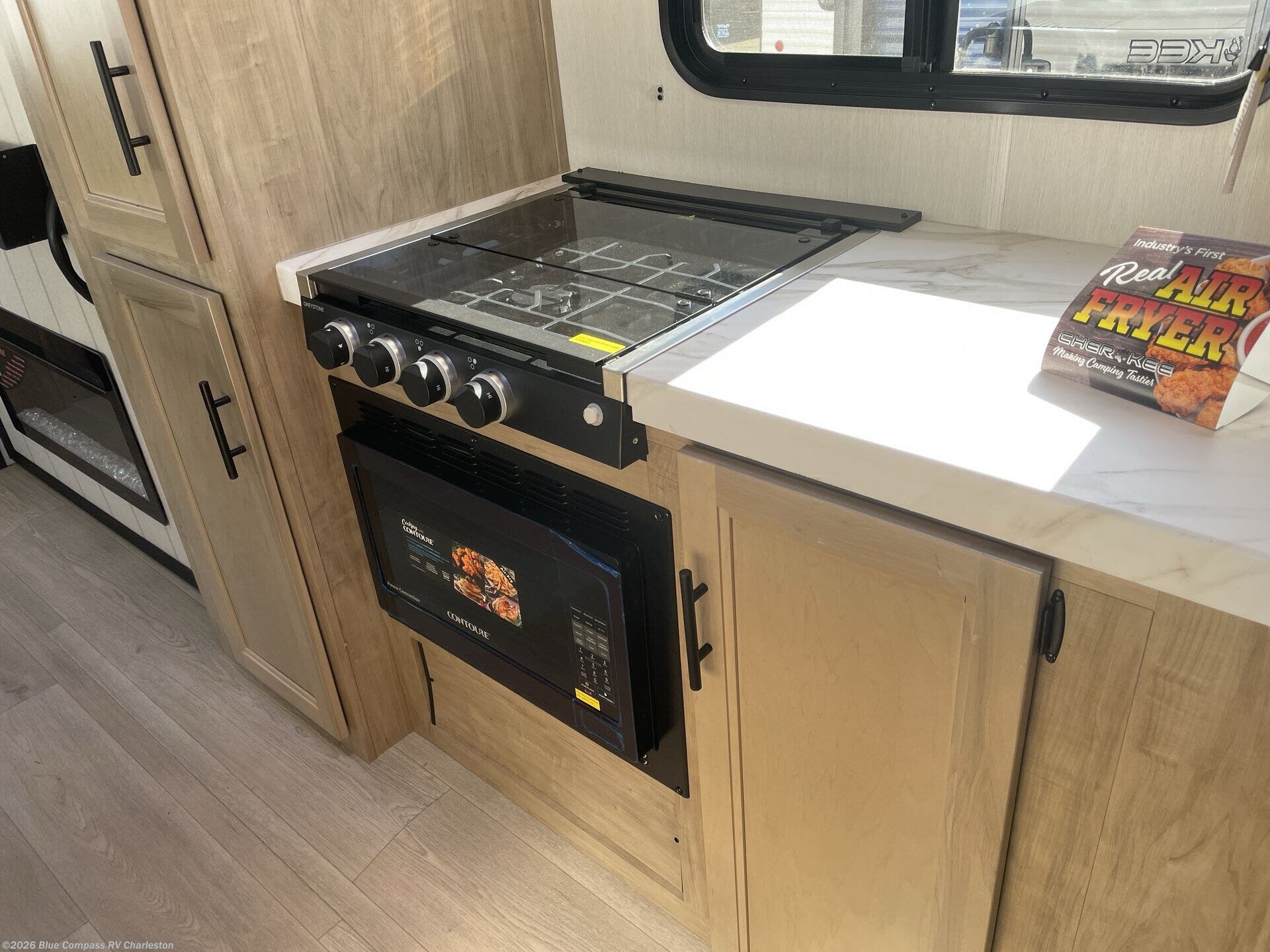 You'll love every minute spent in this double slide out travel trailer. You can relax on the rear sofa or dual lounge chairs, play a game at the booth dinette, and enjoy the glow of the fireplace. The chef of your group will appreciate the kitchen island, air fryer, plus refrigerator and pantry for food storage. A dual entry bath will create a front master bedroom, complete with an RV king bed and a bedside wardrobe to keep your space tidy.
