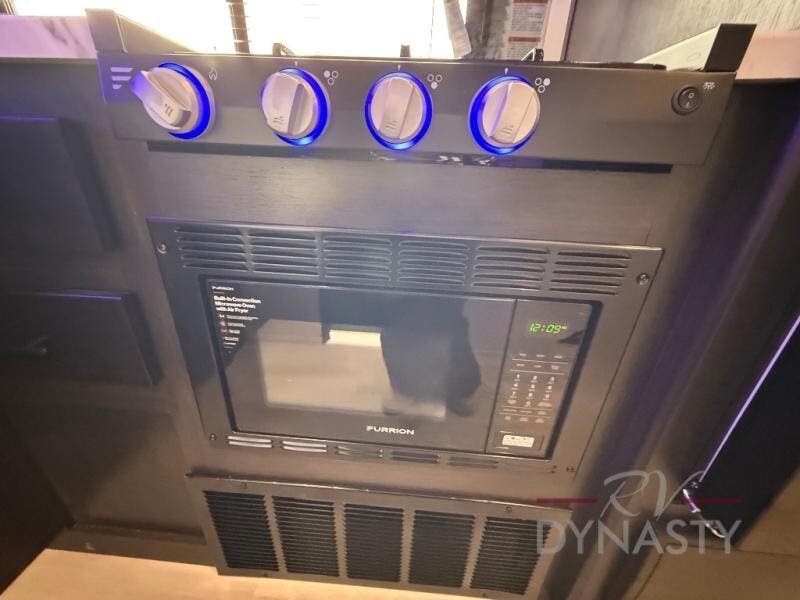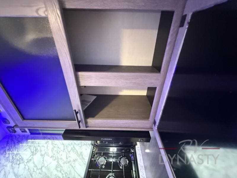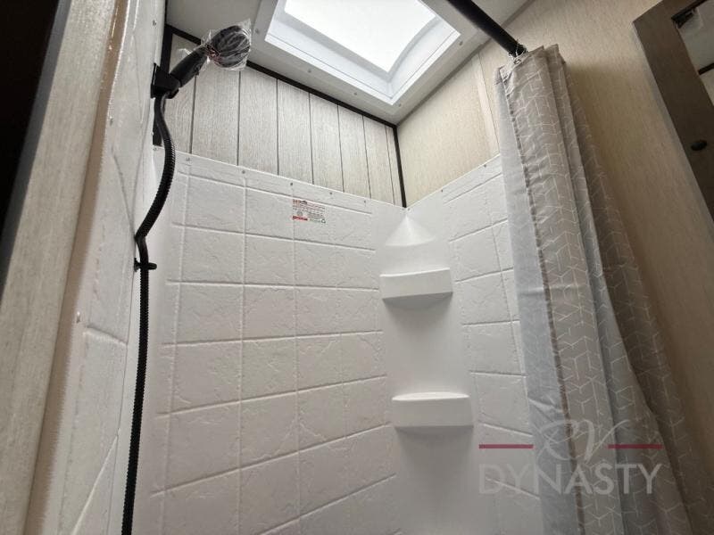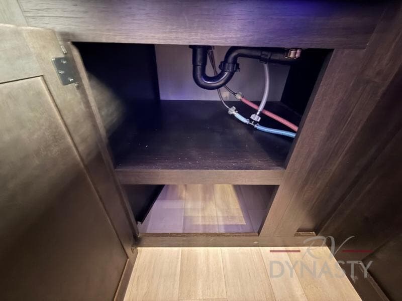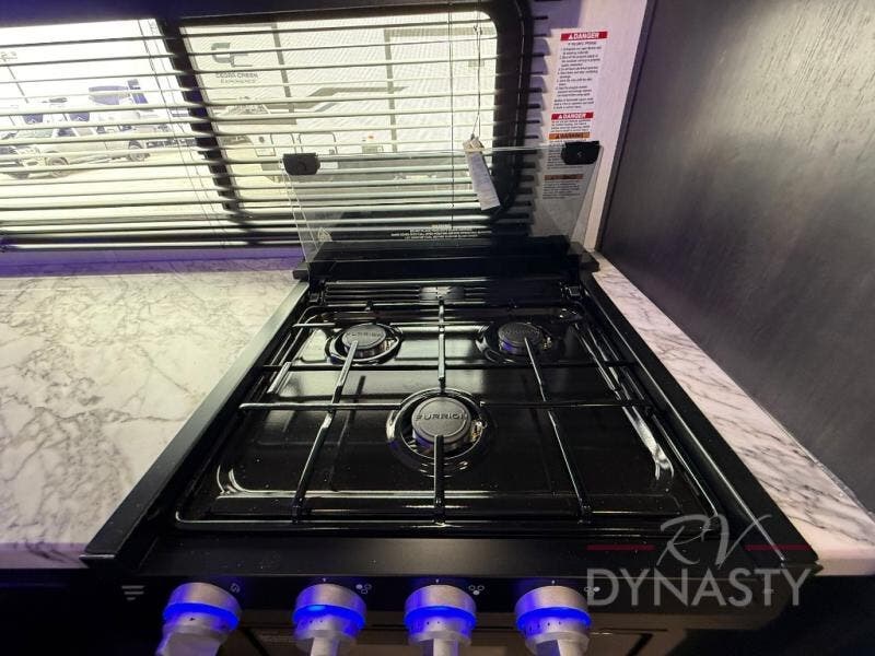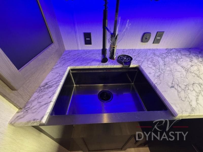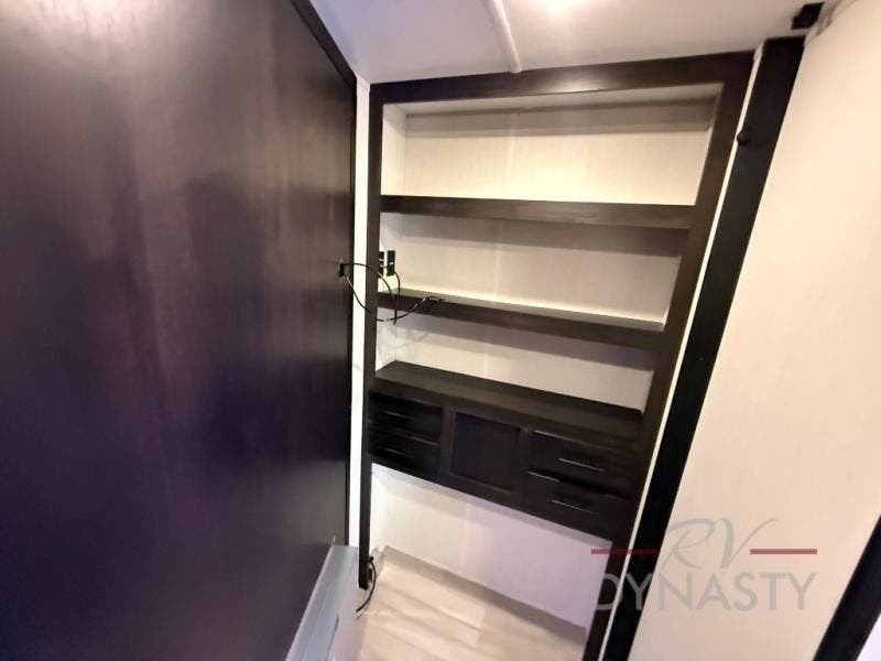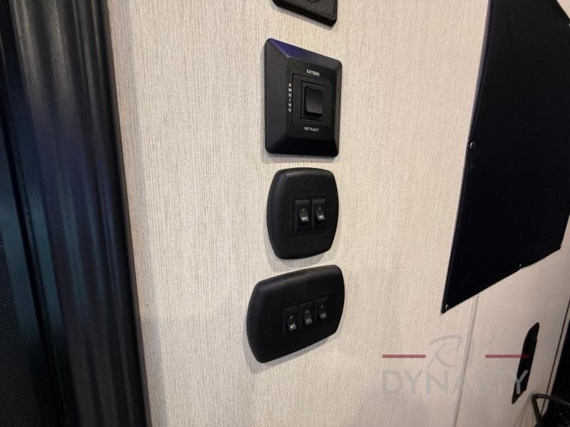 You're going to love camping in this toy hauler with 14' 6" total garage space when you utilize the space up front, which is shared by the kitchen and full bath. The bath linen storage will come in handy for clean towels, and the kitchen pantry will let you keep snacks stocked. You can enjoy your meals at the flip-up countertop with two stools, or head outdoors to sit under the 15' power awning with LED lights. This model also includes a flip-down bed for comfy sleeping space!