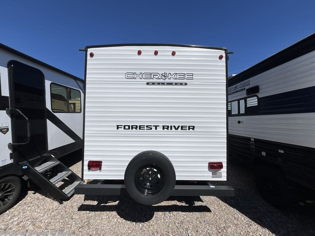 Each one of these Forest River Cherokee Wolf Pup travel trailers and toy hauler are lightweight and easy to tow! They are fully self-contained with ample tank capacities, an abundance of storage space, and filled with at home amenities. The full bath and kitchen amenities will make life at the campground easier than ever, and the outdoor patio awning will provide an inviting outdoor space!