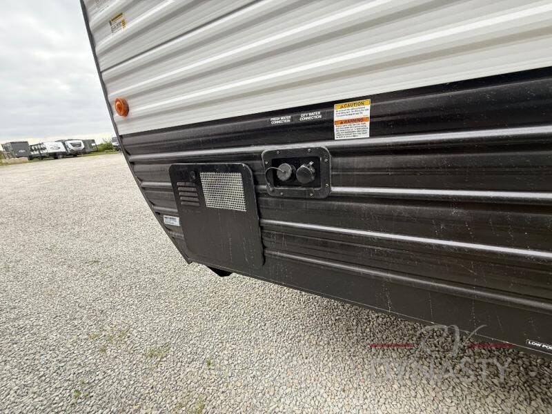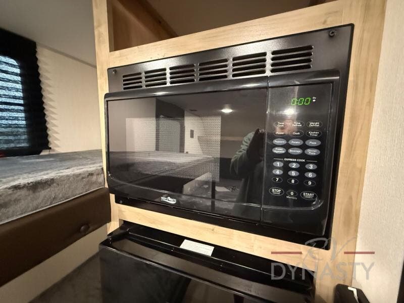 This travel trailer is perfect for epic road trips, memorable camping excursions, or rejuvenating getaways. The full bathroom is equipped with everything you need for a comfortable stay, providing a convenient spot to freshen up after a long day of exploring. The kitchen is equipped with a refrigerator for keeping drinks and ingredients fresh, and a microwave for quick reheating. The bunk beds are a great spot to take a nap or a kid's sleeping space. Overhead cabinets provide additional storage for cookware, dishes, and other essentials. In addition, the queen-sized bed provides a comfortable sleeping space, perfect for relaxing after a long day.