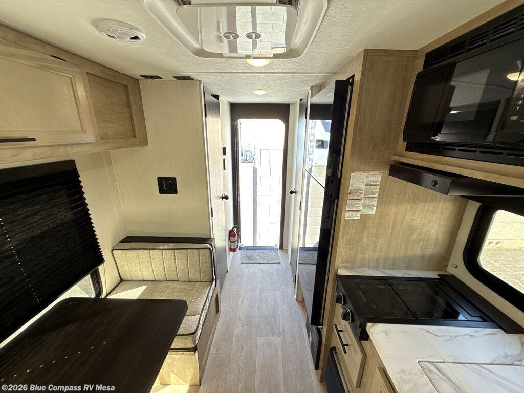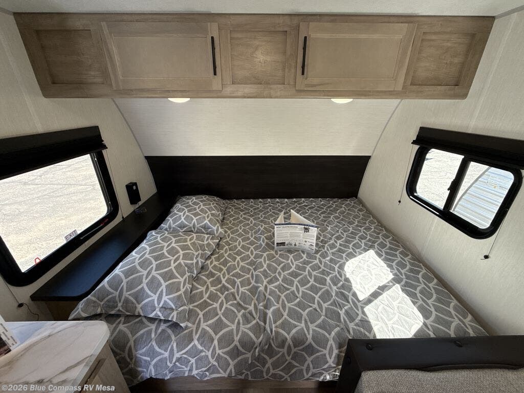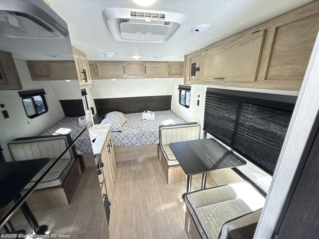 There are lots of features packed into this 19' travel trailer! The rear entry design creates a split bathroom for one person to use the private toilet while another freshens up in the private shower. You can prepare your best home cooked meals with the high output cooktop, the refrigerator, and a sink to make clean up easier, plus you can comfortably enjoy your meals at the booth dinette with a TV mount location. The front queen bed provides a comfortable place to lay your head at night. Store your outdoor gear in the outside storage area and watch the big game outdoors with the outside TV mount if you added a TV!