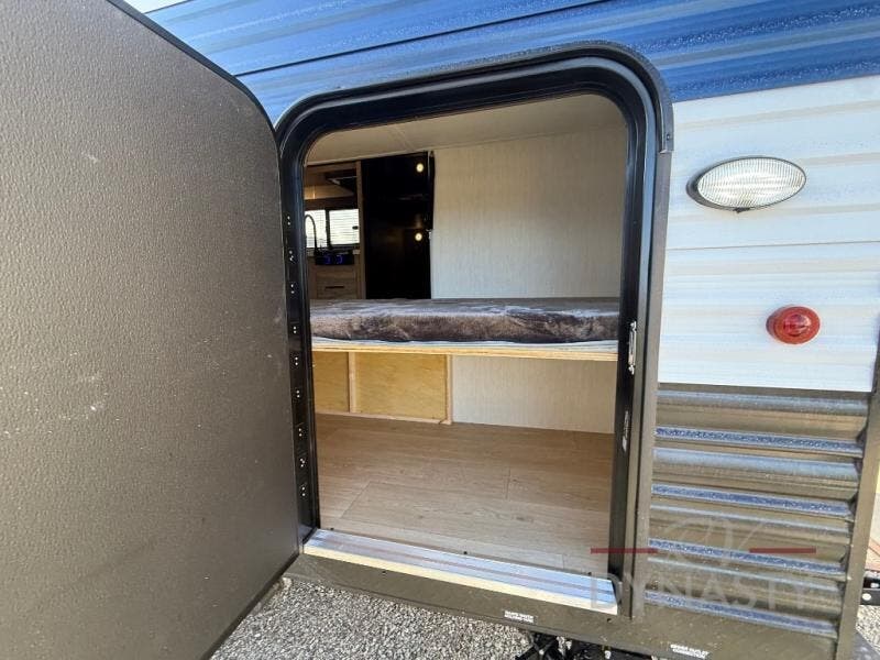 Each of these Forest River Cherokee Wolf Pup travel trailers and toy haulers are designed to be lightweight and easy to tow, making them ideal for both first time and experienced RV owners. They are fully self contained with ample tank capacities, generous storage space, and practical amenities that make traveling comfortable and convenient. Inside, you will find a full kitchen and bathroom setup that makes life at the campground simple and enjoyable. Many models also feature solar reflective tinted safety glass windows and durable roof construction designed to improve comfort and long term performance on the road. Outside, the full length power awning creates a welcoming space where you can relax, cook, or spend time with friends and family at the campsite.