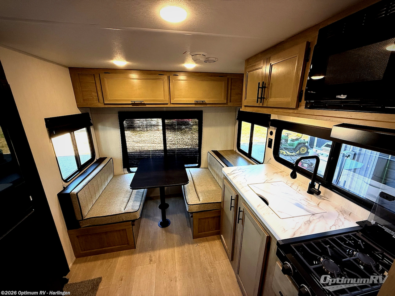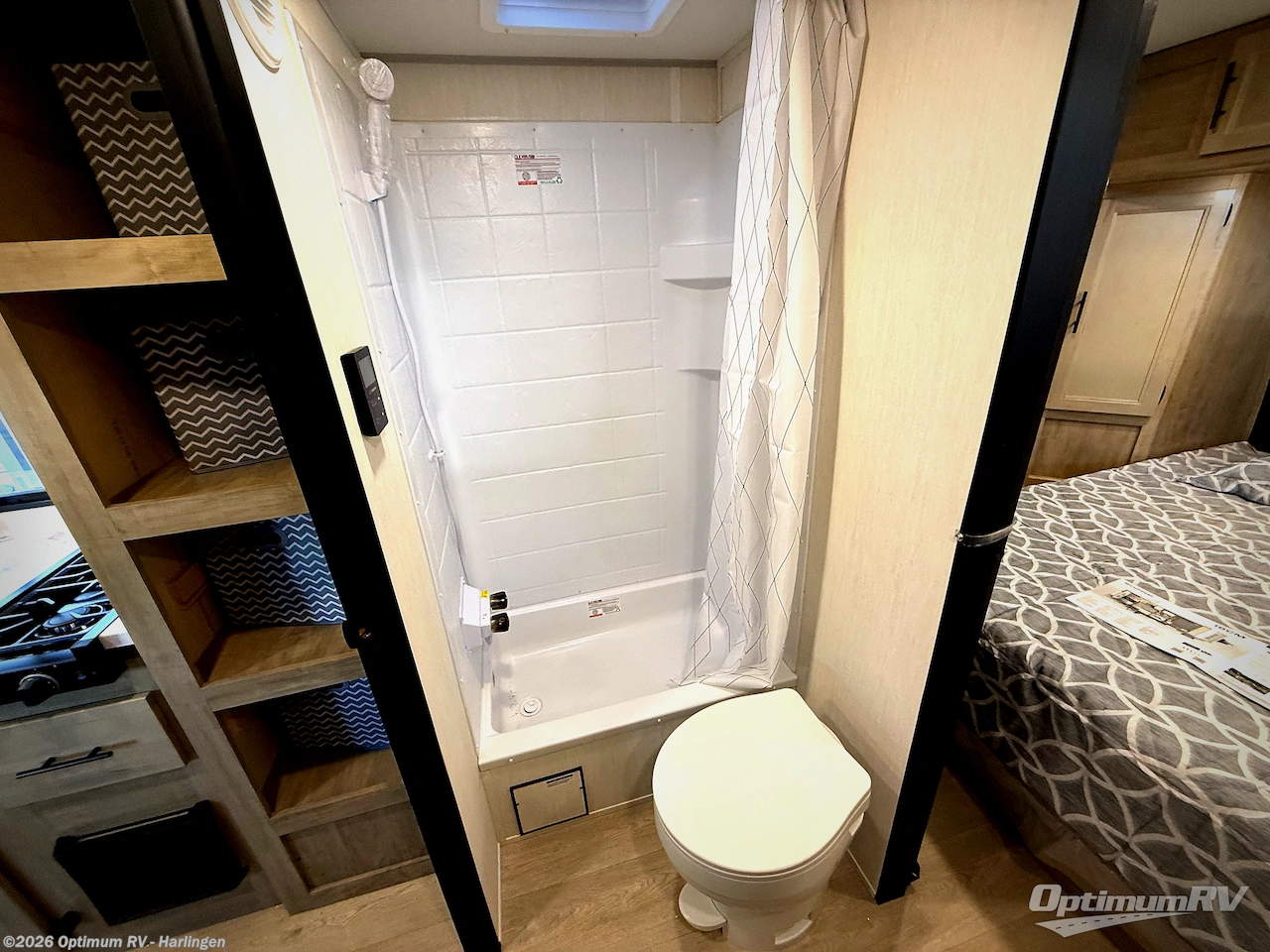Convenient camping is found with this lightweight travel trailer! Once you arrive at your destination, put out the 15' power awning, then make lunch on the exterior mini kitchen. Inside, you can dine at the booth dinette, freshen up in the tub/shower, and sleep soundly on the queen bed in the master bedroom. And you're sure to find plenty of storage spaces both inside and outside.