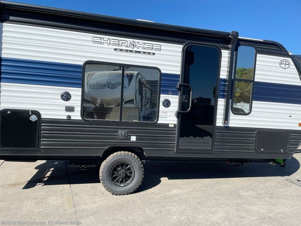 Adventure awaits in this new 2026 Cherokee Wolf Pup travel trailer. Only 22' in length this camper is light to tow and very maneuverable. Enjoy relaxing under the power awning with LED lights. Complete with cargo rack on the rear. Just add the FUN! Give us a call for more details.