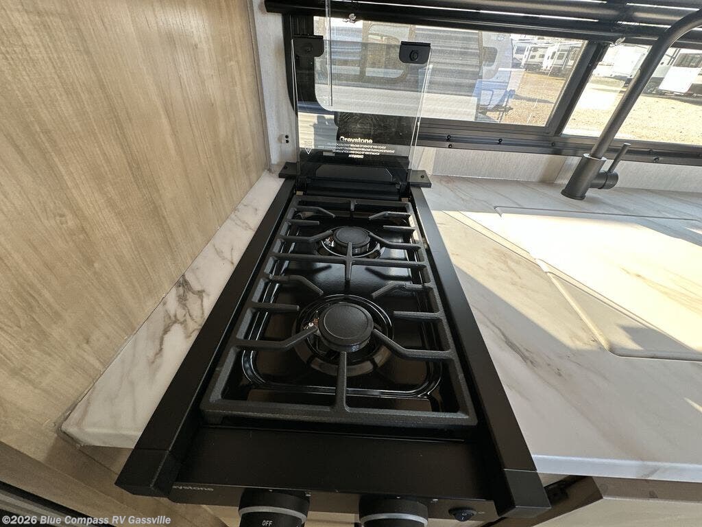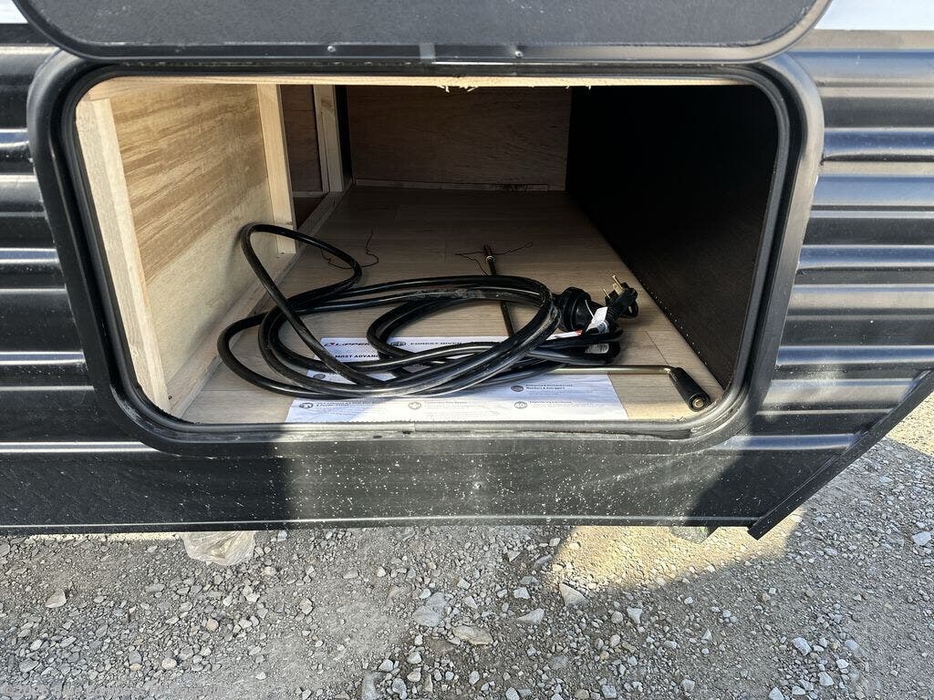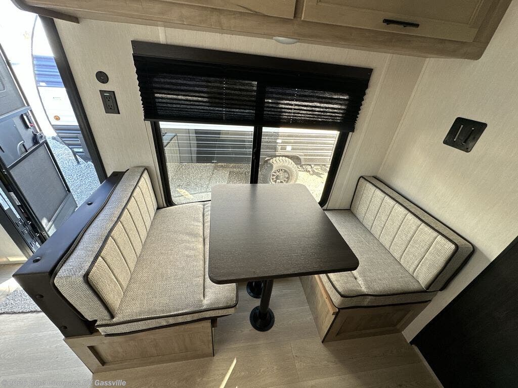 You will love camping in this travel trailer with a front queen bed. Freshen up each morning in the full rear bathroom with the tub/shower, a toilet, and sink. Fill your bellies with the perishables stored in the refrigerator and cook them on the cooktop then enjoy them at the booth dinette. You could even prepare a meal while breathing in some fresh air at the outside mini kitchen while staying protected by the 12' power awning. Easily store all of your outdoor gear in the outside storage area too!