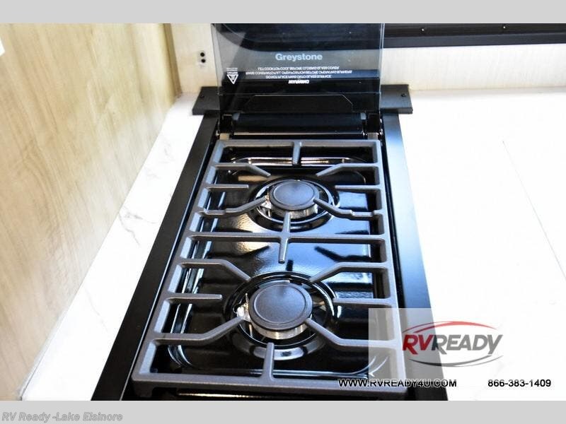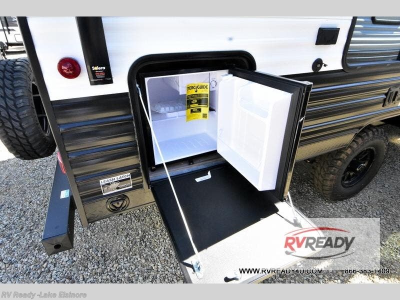 You will love camping in this travel trailer with a front queen bed. Freshen up each morning in the full rear bathroom with the tub/shower, a toilet, and sink. Fill your bellies with the perishables stored in the refrigerator and cook them on the cooktop then enjoy them at the booth dinette. You could even prepare a meal while breathing in some fresh air at the outside mini kitchen while staying protected by the 12' power awning. Easily store all of your outdoor gear in the outside storage area too!