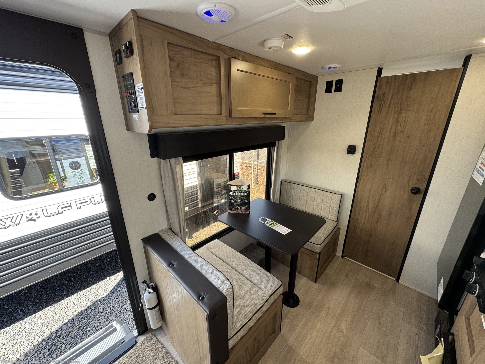 This 2026 Forest River Cherokee Wolf Pup 16FQW is outfitted with all the features you need for happy camping. This 2026 Forest River Cherokee Wolf Pup 16FQW welcomes you into the Forest River family! If you’re looking for a family RV, you’ve found it: this rig sleeps 3. It doesn’t matter whether you are cooking for one or an entire campground, this kitchen has everything you need with the fridge, stove. Remote work, homeschooling and dinner times are all made possible by the dinette bed. You’ll wake up feeling well-rested for your adventures in your dinette bed. Keep a comfortable temperature inside your rig with the heating option. If you’re thinking of heading off grid, this rig has a 26 fresh water tank. The exterior features make camping a breeze, such as detachable power cord, exterior speakers, external shower, power awning, screen door, skylight, spare tire kit, stabilizer jacks and tinted windows. Make sure kids don’t track mud inside with the outside shower.