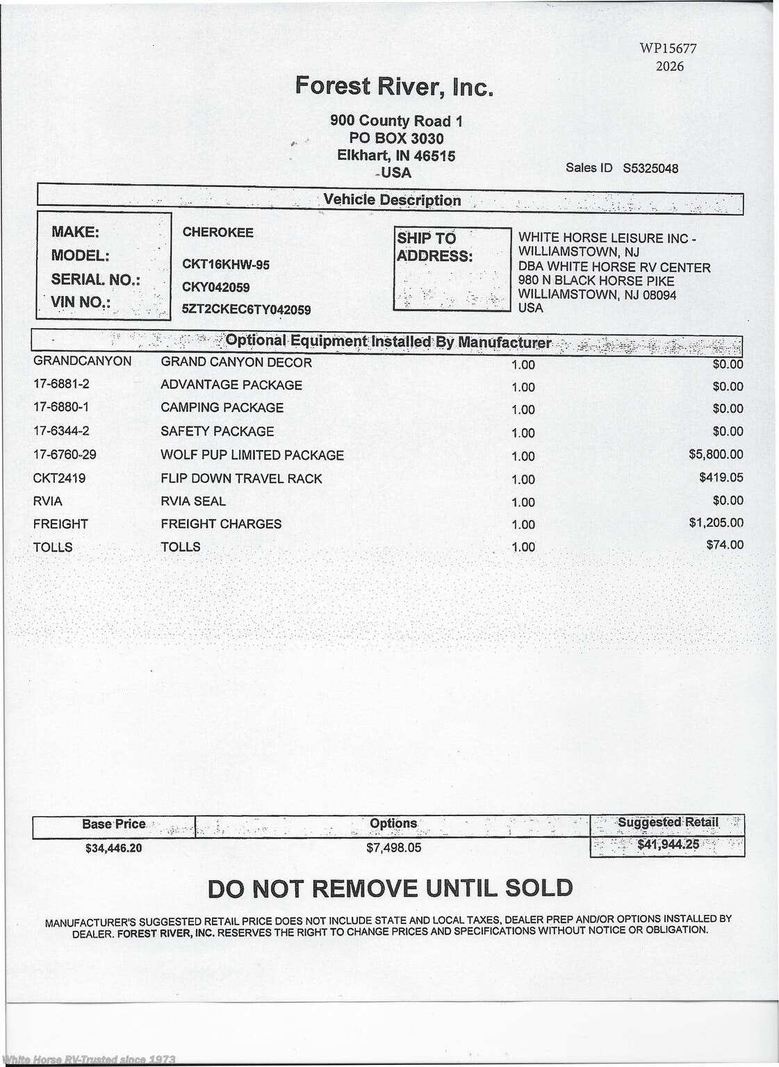 This Forest River Cherokee Wolf Pup 16KHW (Stock # WP15677) includes the Advantage Package, Camping Package, Safety Package, Wolf Pup Limited Package , & Interior Décor Grand Canyon.. MSRP $41,944.25.