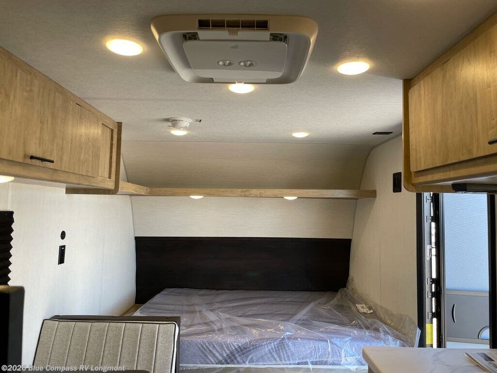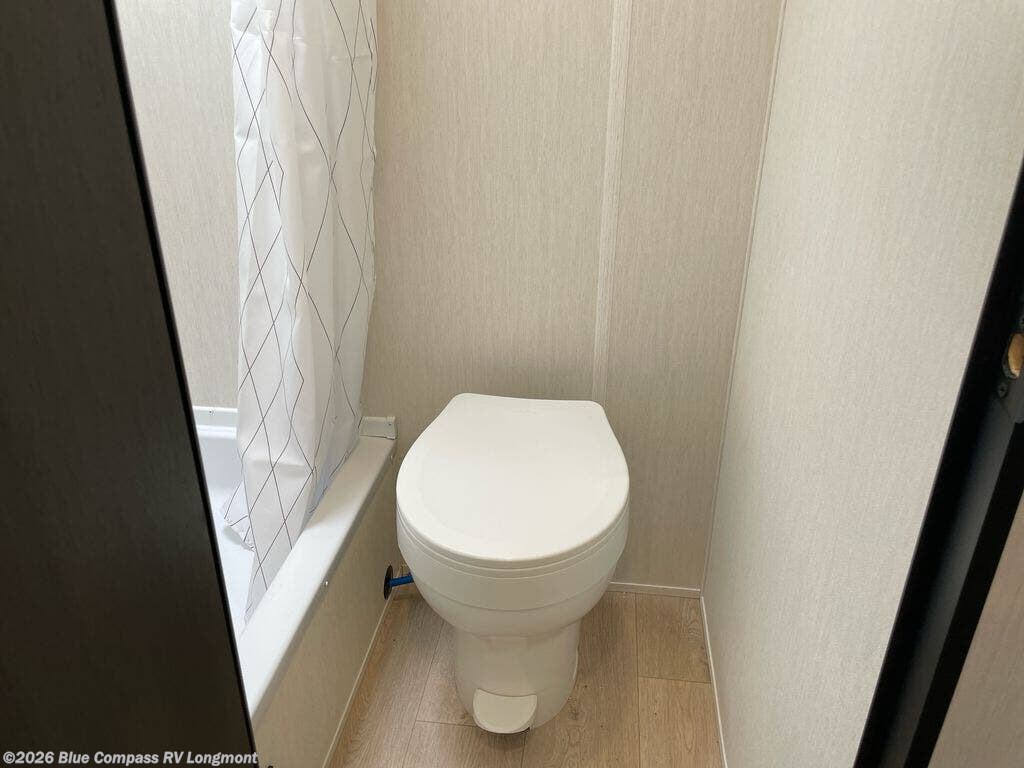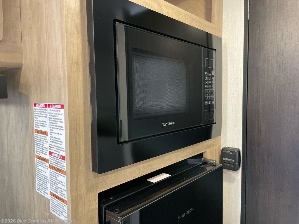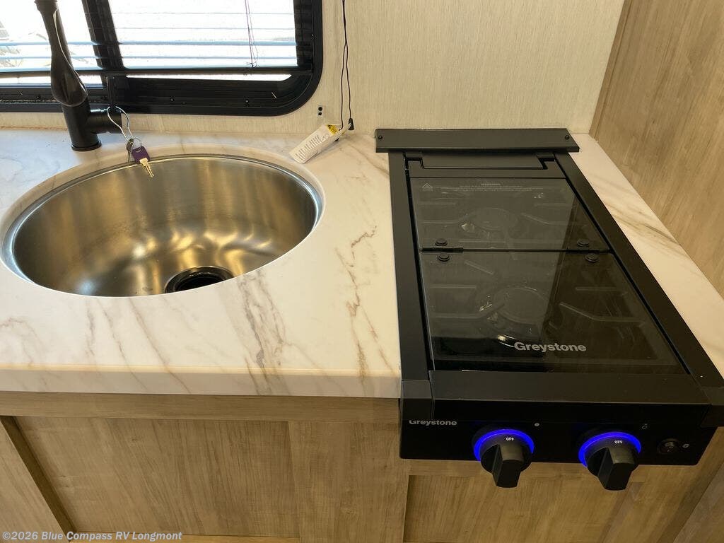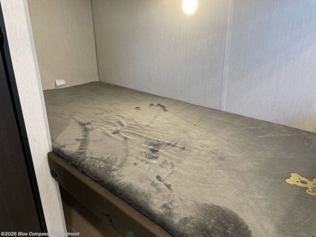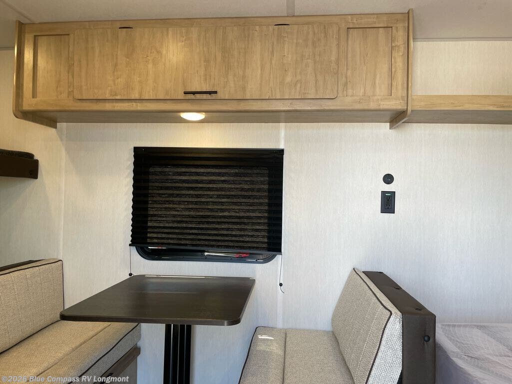 The whole family can sleep comfortably in this travel trailer! It has a set of bunk beds for the kids to sleep on, and you can sleep comfortably on the front queen bed with overhead cabinets and a shelf. The chef will enjoy preparing their best home cooked meals with the high output cooktop, and you can dine at the booth dinette. And the private bath onboard means you won't have to leave your camper in the middle of the night!