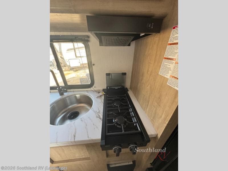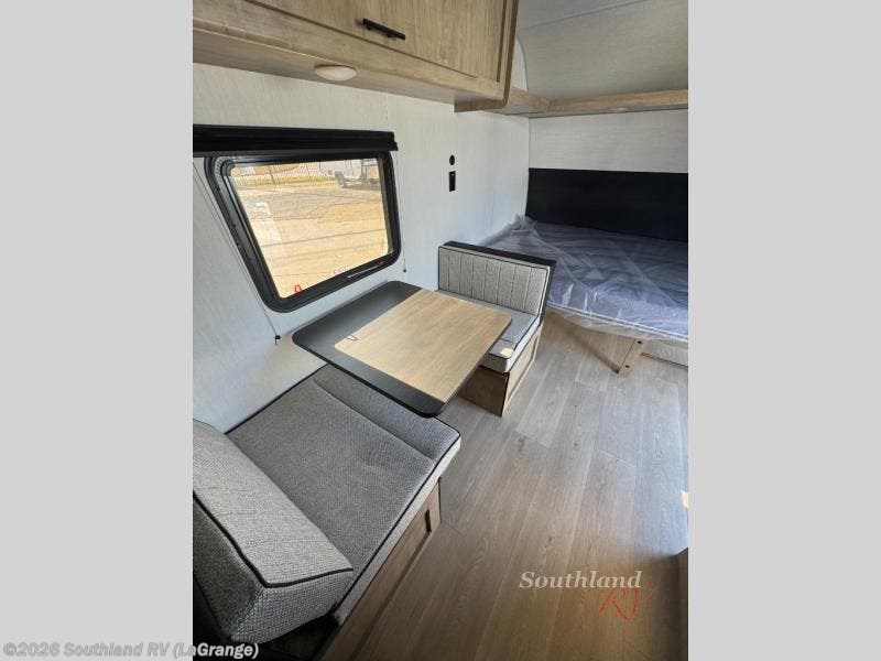 The whole family can sleep comfortably in this travel trailer! It has a set of bunk beds for the kids to sleep on, and you can sleep comfortably on the front queen bed with overhead cabinets and a shelf. The chef will enjoy preparing their best home cooked meals with the cooktop, and you can dine at the booth dinette. And the private bath onboard means you won't have to leave your camper in the middle of the night!