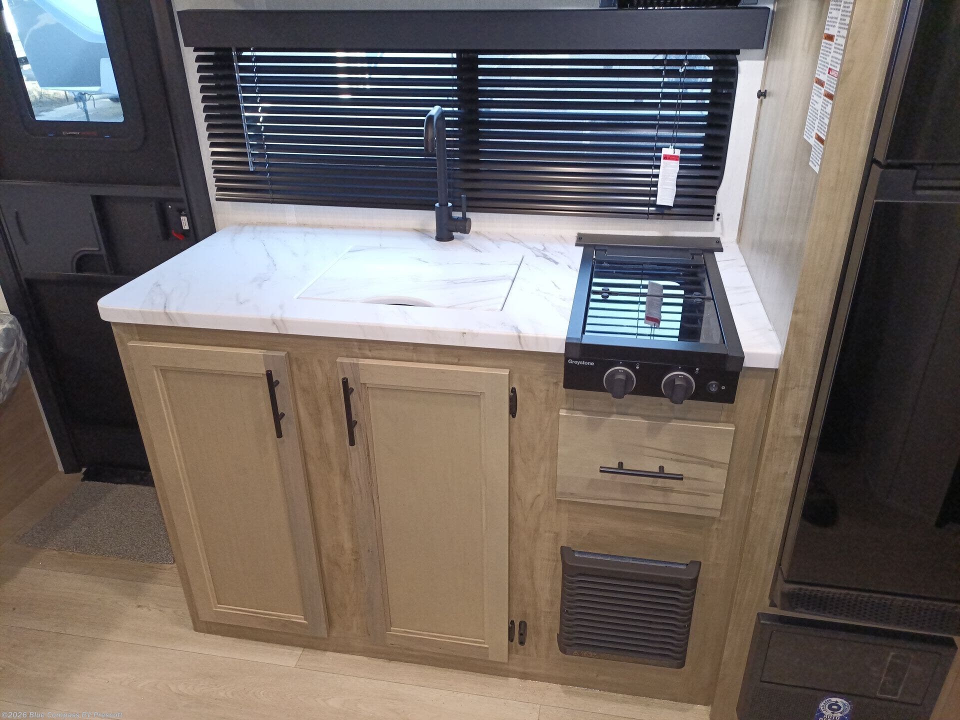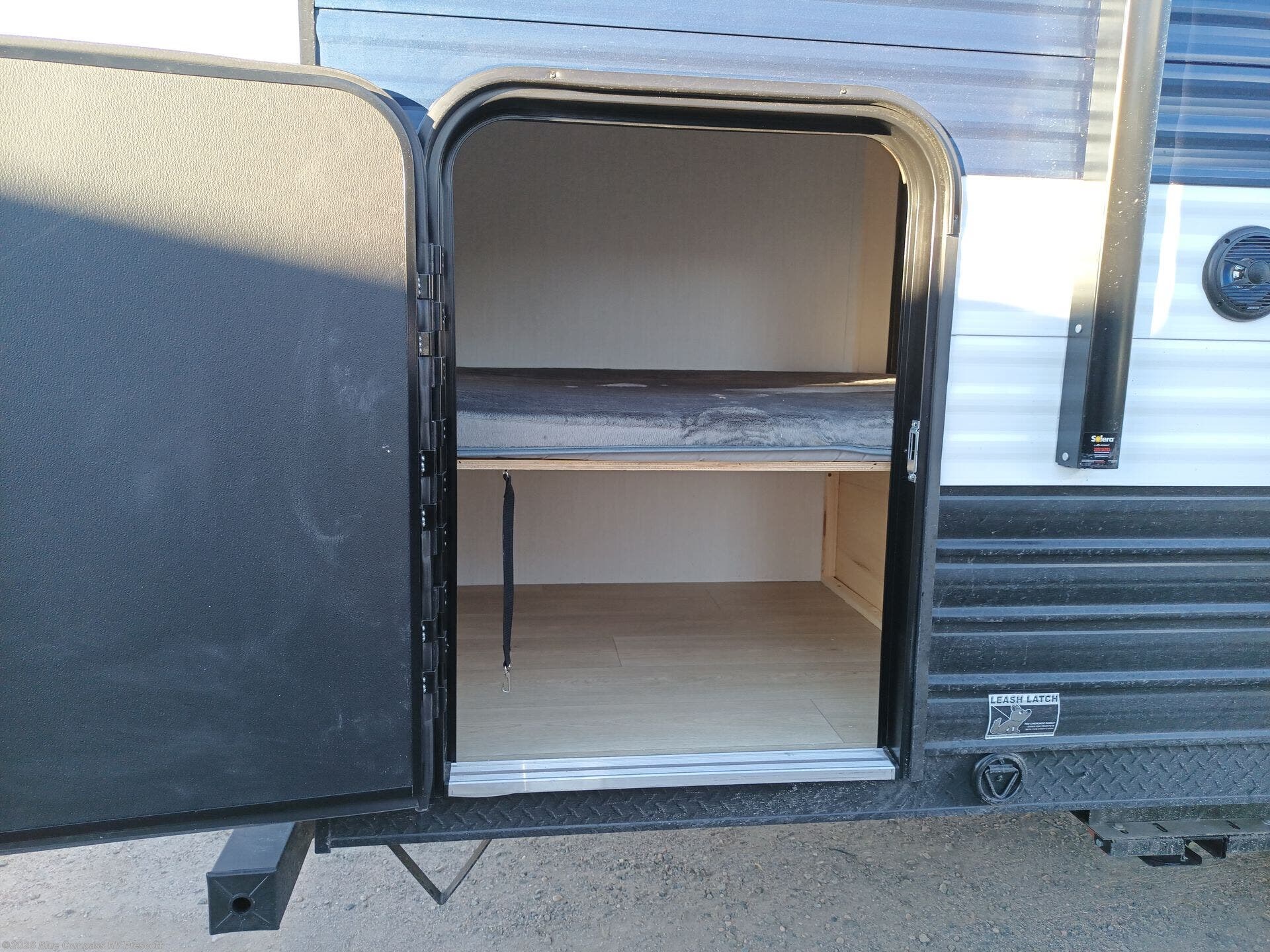 This family travel trailer is ready to head to the campground whenever you are! The kiddos can sleep on the set of double-size bed bunks, and you can sleep on the front queen bed, plus the U-shaped dinette slide can also transform into an extra sleeping space when you aren't using it to enjoy a meal prepared with the cooktop. You can also prepare your delicious meals at the outside mini kitchen and stay protected by the power awning. The exterior not only has outside storage and an outside TV mount but also features an outside storage plus door for access to the storage space underneath the bottom bunk bed. The rear corner bath allows everyone to stay clean and refreshed while you camp.