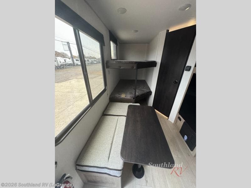 Create amazing memories in this stunning travel trailer! It is perfect for at least six people, thanks to its multiple sleeping spaces. The spacious double-sized bunk beds are ideal for kids or guests, while the plush queen-sized bed provides a restful retreat for adults. The full bathroom is equipped with everything you need for a comfortable stay, and the kitchen features a refrigerator and microwave for you to go wild in the kitchen. You can also gather around the dinette for meals and snacks, or relax in the evenings under the protection of the exterior awning. In addition, ample overhead cabinets provide storage for cookware, dishes, and essentials, keeping your trailer tidy and organized.