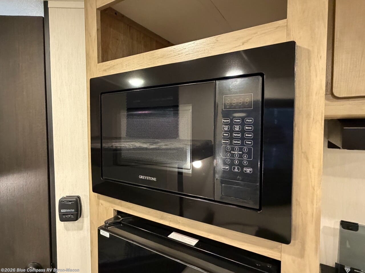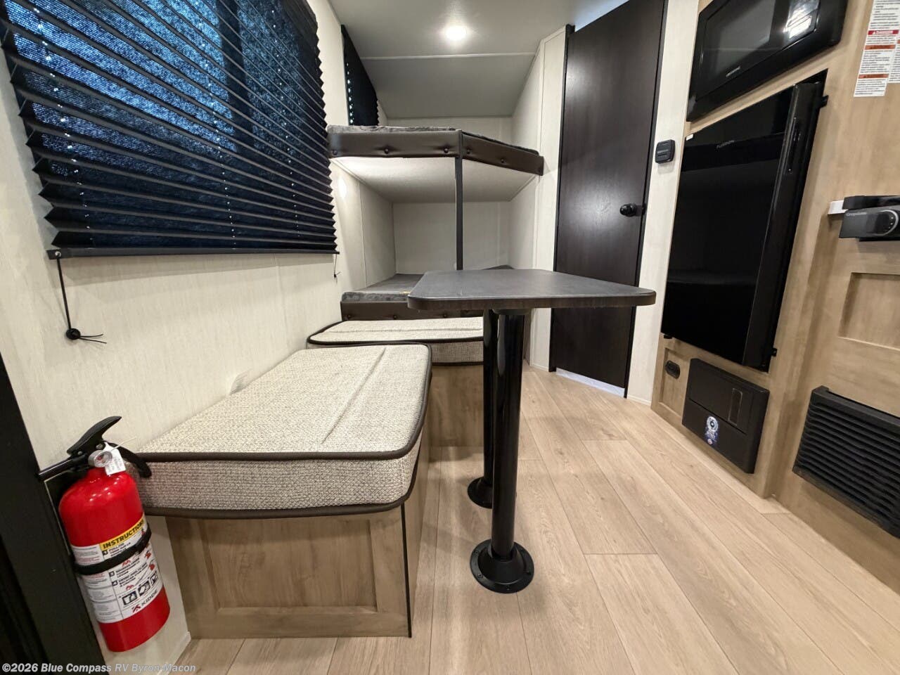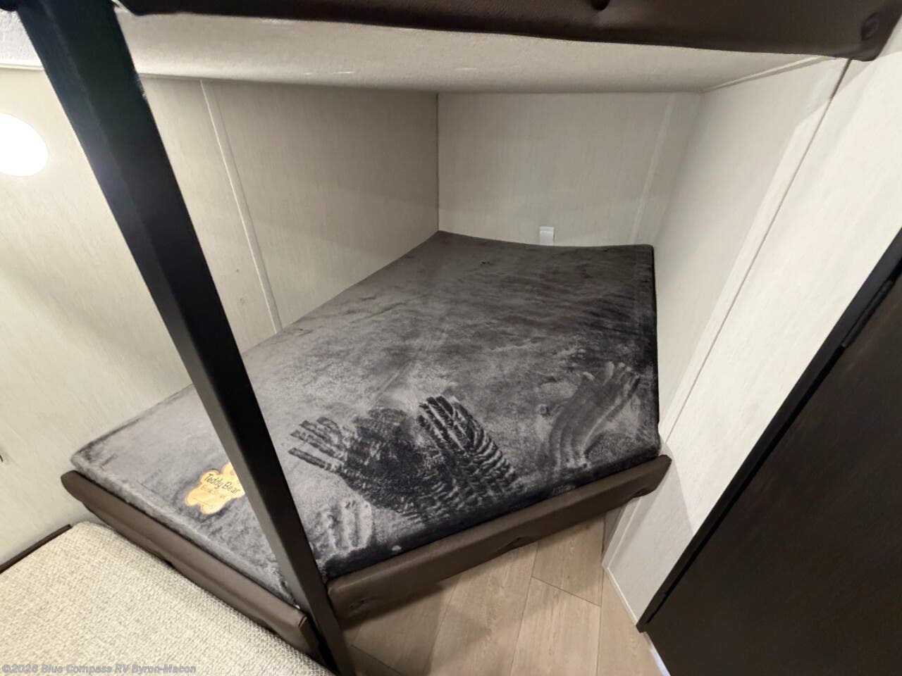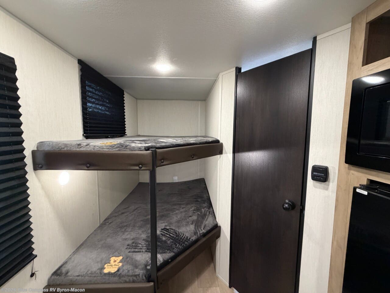 Create amazing memories in this stunning travel trailer! It is perfect for at least six people, thanks to its multiple sleeping spaces. The spacious double-sized bunk beds are ideal for kids or guests, while the plush queen-sized bed provides a restful retreat for adults. The full bathroom is equipped with everything you need for a comfortable stay, and the kitchen features a refrigerator and microwave for you to go wild in the kitchen. You can also gather around the dinette for meals and snacks, or relax in the evenings under the protection of the exterior awning. In addition, ample overhead cabinets provide storage for cookware, dishes, and essentials, keeping your trailer tidy and organized.