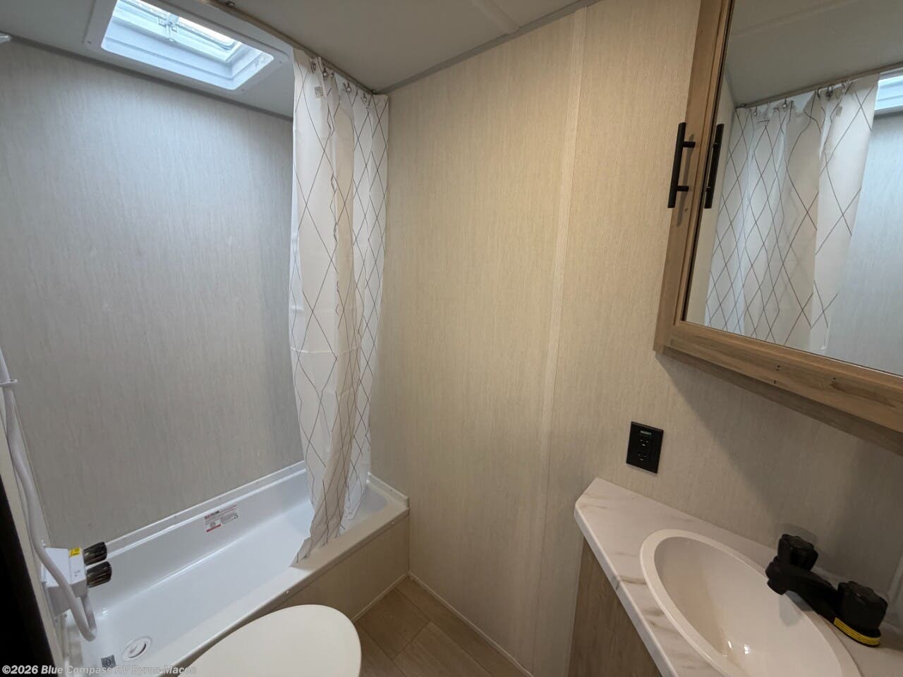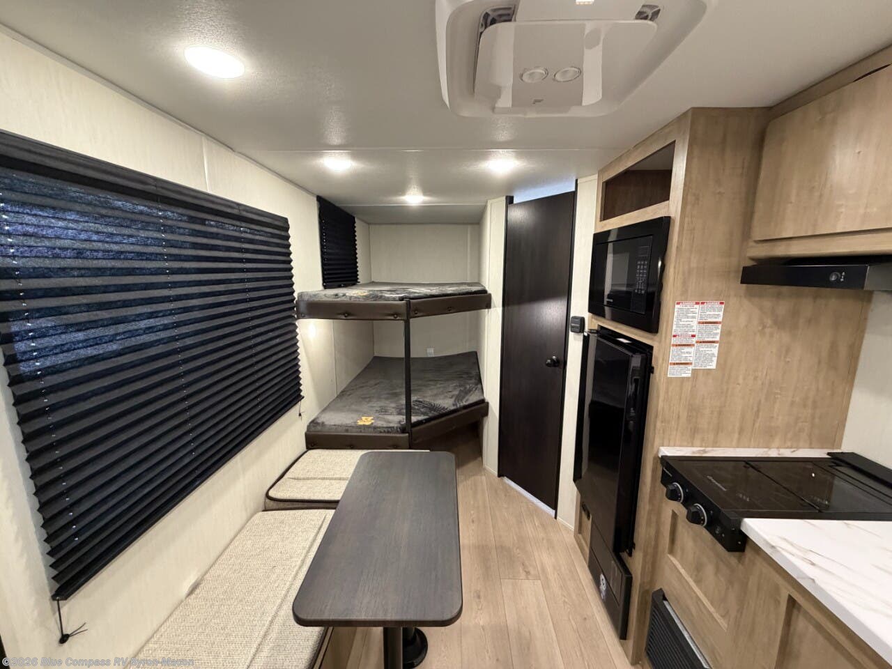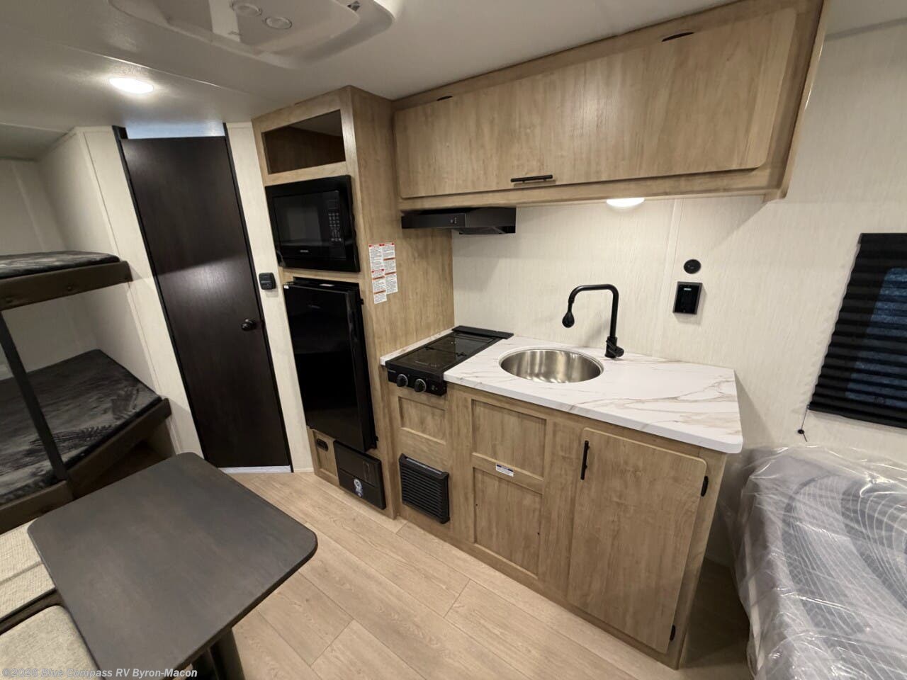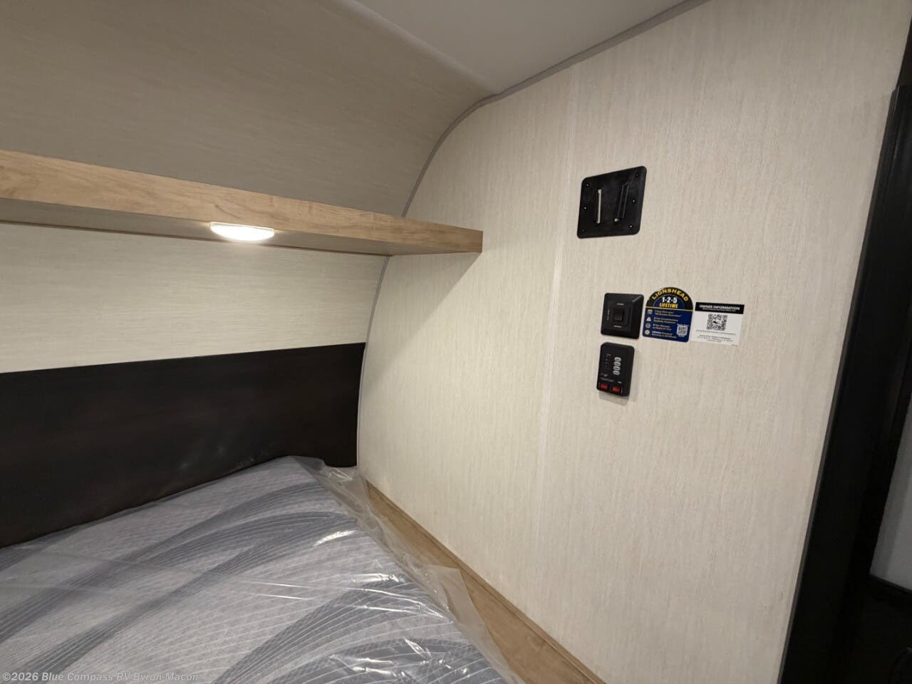 Create amazing memories in this stunning travel trailer! It is perfect for at least six people, thanks to its multiple sleeping spaces. The spacious double-sized bunk beds are ideal for kids or guests, while the plush queen-sized bed provides a restful retreat for adults. The full bathroom is equipped with everything you need for a comfortable stay, and the kitchen features a refrigerator and microwave for you to go wild in the kitchen. You can also gather around the dinette for meals and snacks, or relax in the evenings under the protection of the exterior awning. In addition, ample overhead cabinets provide storage for cookware, dishes, and essentials, keeping your trailer tidy and organized.