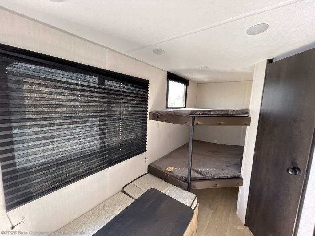 Create amazing memories in this stunning travel trailer! It is perfect for at least six people, thanks to its multiple sleeping spaces. The spacious double-sized bunk beds are ideal for kids or guests, while the plush queen-sized bed provides a restful retreat for adults. The full bathroom is equipped with everything you need for a comfortable stay, and the kitchen features a refrigerator and microwave for you to go wild in the kitchen. You can also gather around the dinette for meals and snacks, or relax in the evenings under the protection of the exterior awning. In addition, ample overhead cabinets provide storage for cookware, dishes, and essentials, keeping your trailer tidy and organized.