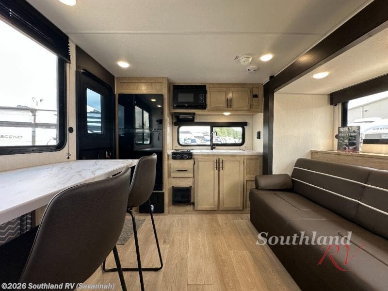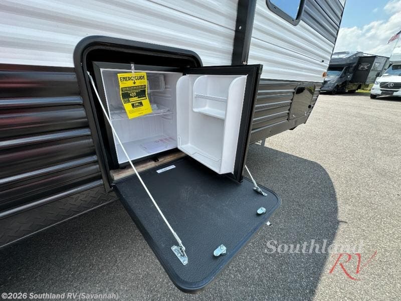 Convenient camping is found with this lightweight travel trailer! Once you arrive at your destination, put out the power awning, then make lunch on the exterior mini kitchen. Inside, you can dine at the bar top with stools, freshen up in the tub/shower, and sleep soundly on the queen bed in the master bedroom. There is also a sofa slide out to provide additional seating, sleeping, and interior space! And you're sure to find plenty of storage spaces both inside and outside, including a rear storage rack!