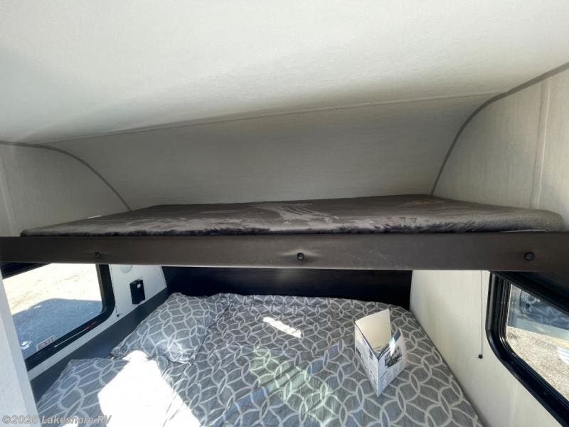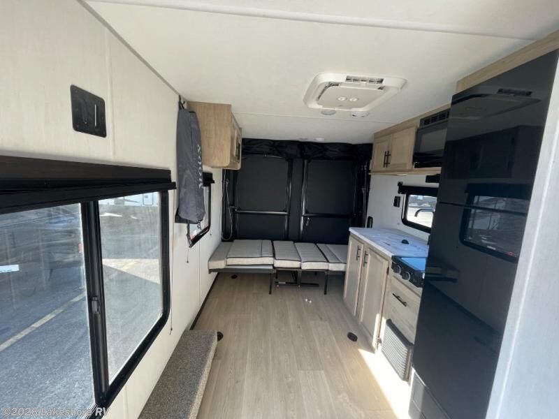 Sleeping for five and up to 13' 11" for your toys makes for an exciting adventure. The rear ramp door makes it easy to load and unload your toys, and once you are camped and the toys are removed, you can set up the dinette in back with removeable table. At night, this can double as sleeping space for two more tired campers. Up front, a queen bed with bunk above, plus storage. A tub/shower will keep everyone feeling their best, and the modern chef's kitchen will allow you to keep everyone fueled and ready for fun! There is also outside storage up front and a 12' awning for added living space outside to enjoy.