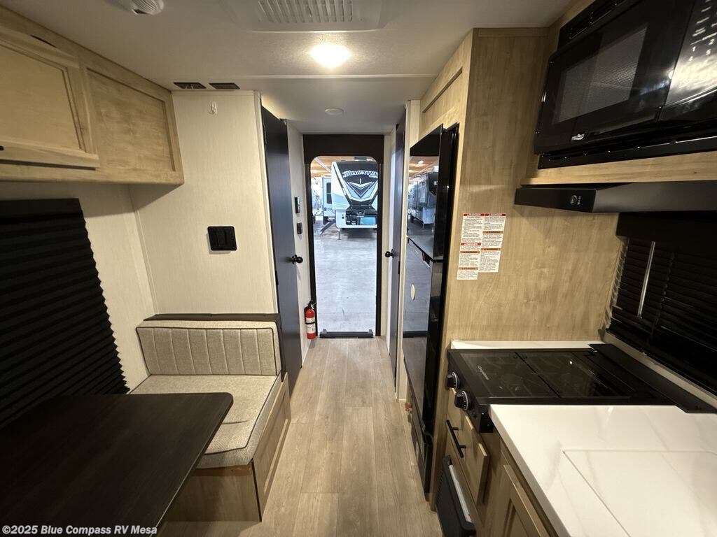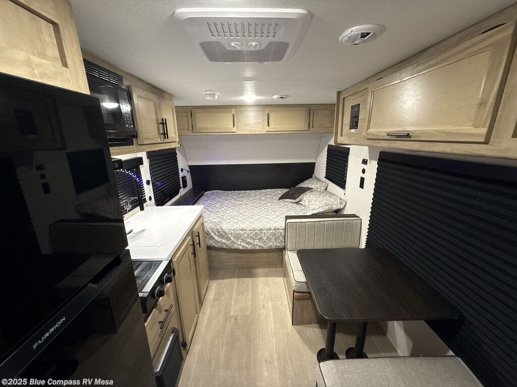 There are lots of features packed into this 19' travel trailer! The rear entry design creates a split-style bathroom for one person to use the private toilet while another freshens up in the private shower. You can prepare your best home cooked meals with the cooktop, refrigerator, and a sink to make clean up easier, plus you can comfortably enjoy your meals at the booth dinette. The front queen bed provides a comfortable place to lay your head at night. Store your outdoor gear in the outside storage area, relax under the 10' awning, and watch the big game outdoors if you decided to add a television to the outside TV mount!