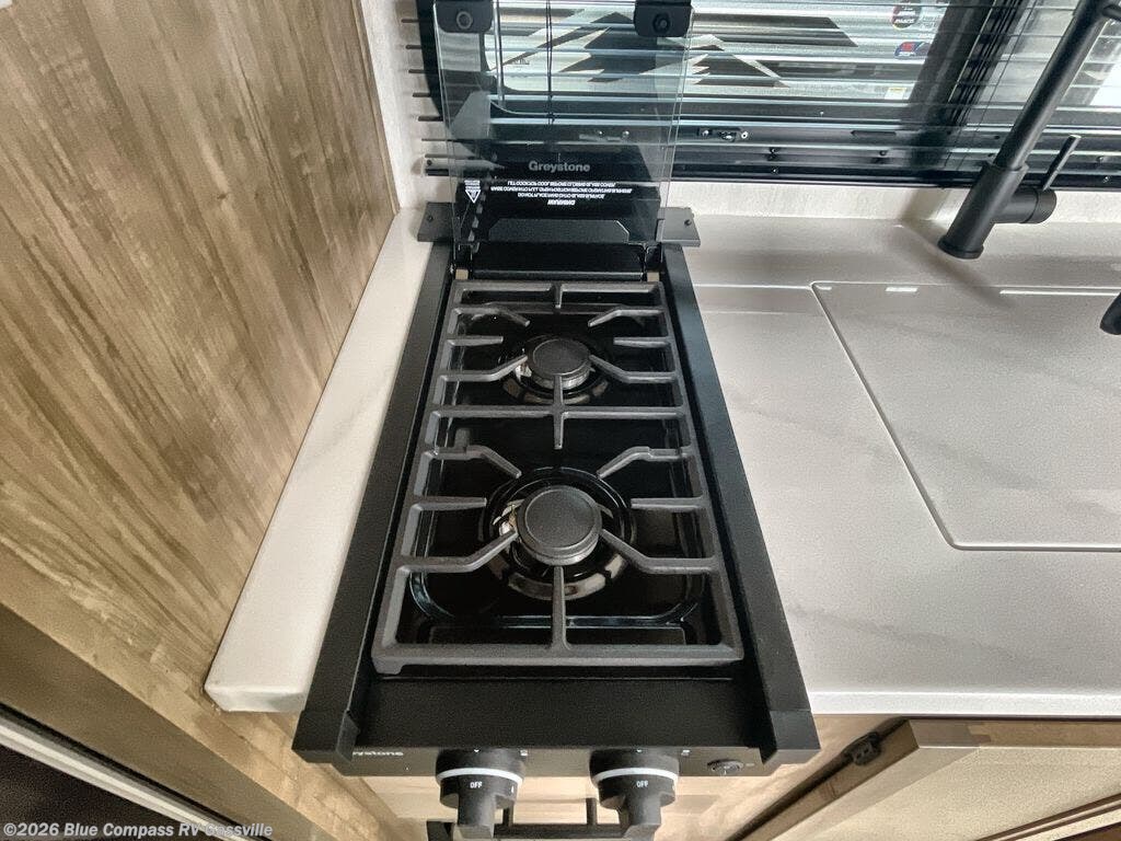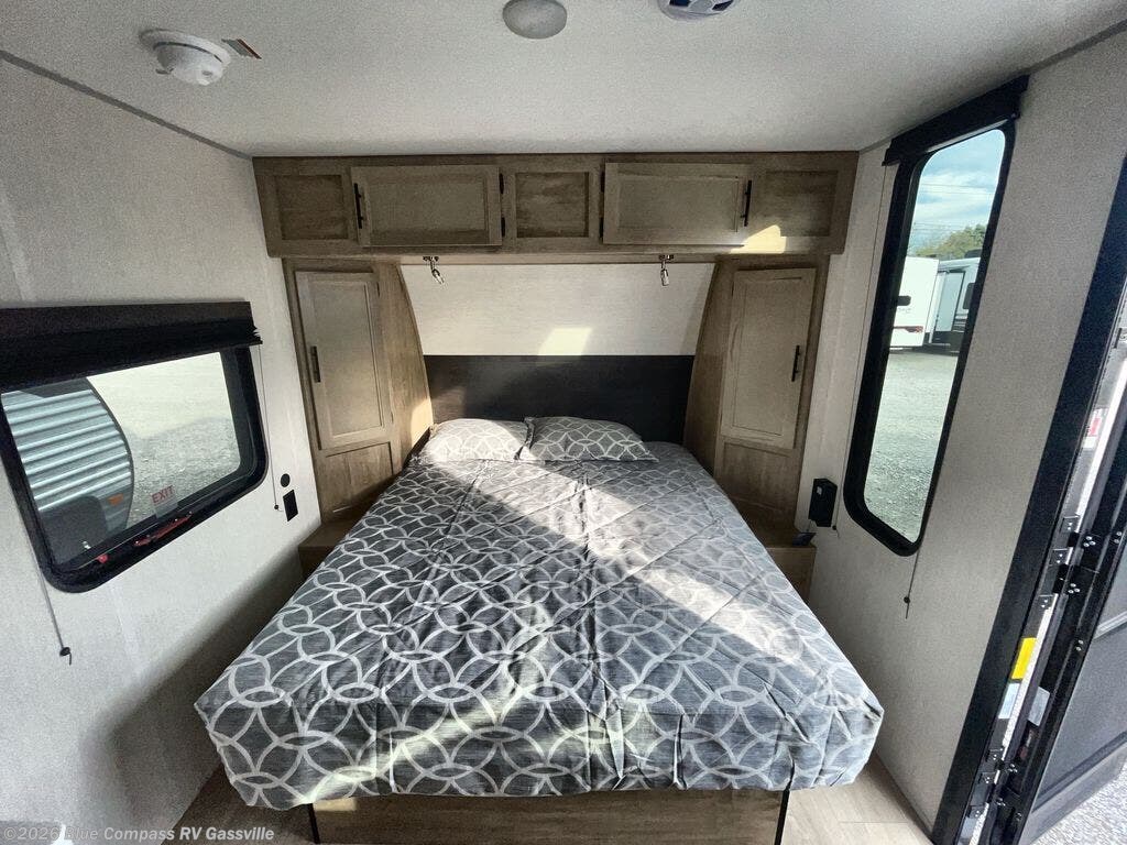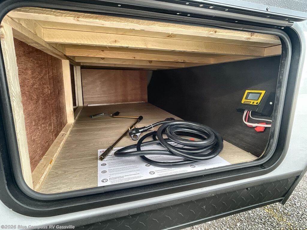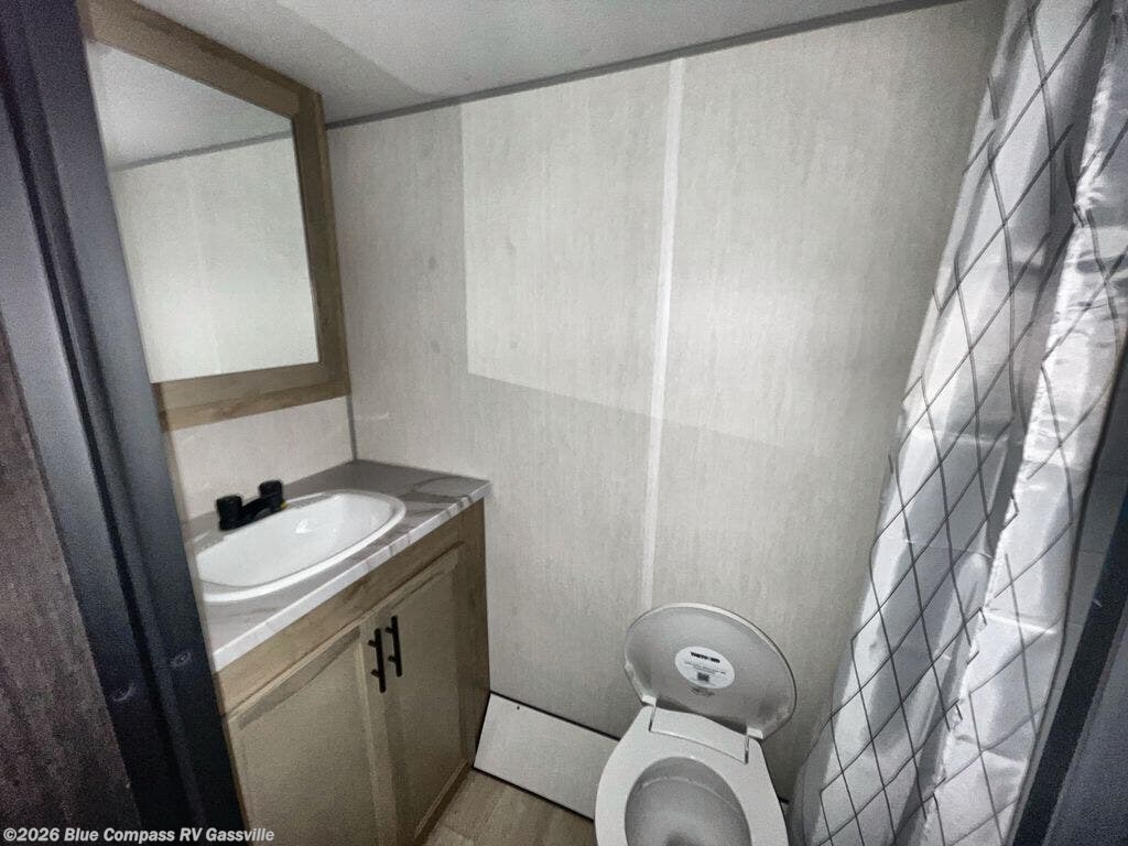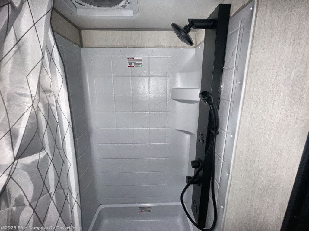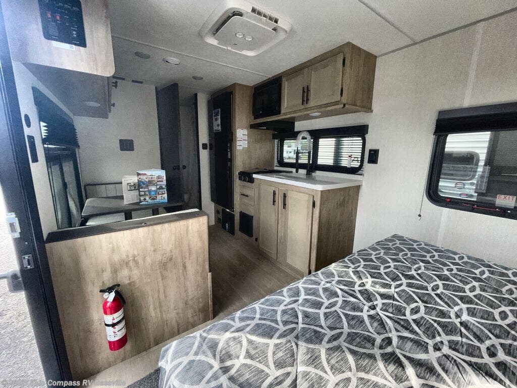 You will love camping in this travel trailer with your own queen bed up front! Freshen up each morning in the full rear bathroom with the tub/shower, toilet, and sink. Fill your bellies with the perishables stored in the 12V high efficiency refrigerator and cook them on the high output cooktop. You could even prepare a meal while breathing in some fresh air at the outside mini kitchen while staying protected by the 12' power awning. Easily store all of your outdoor gear in the outside storage area too!