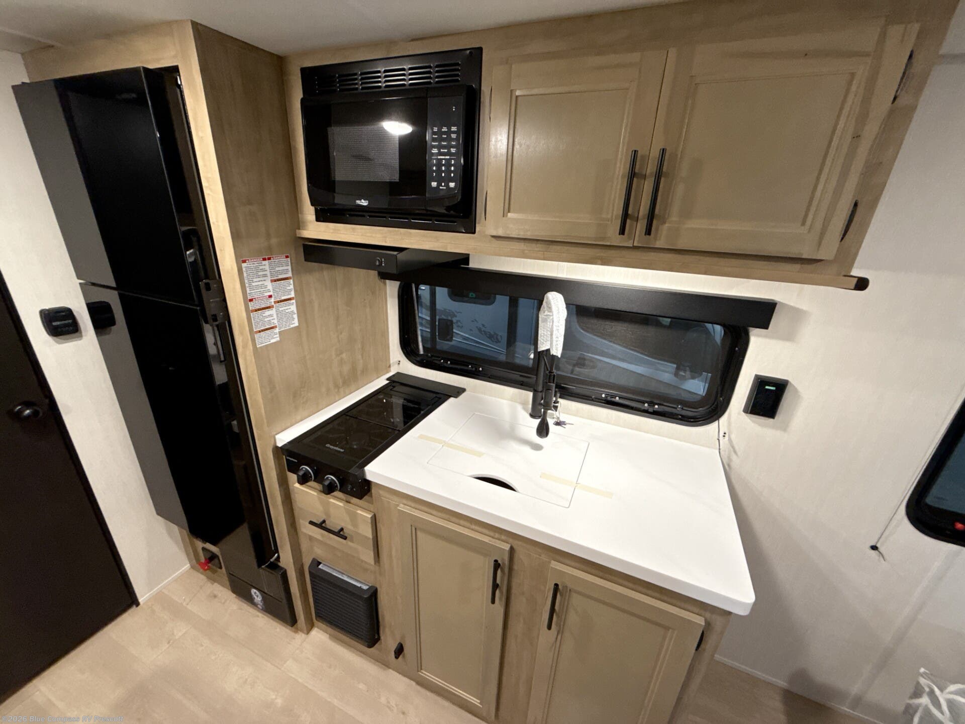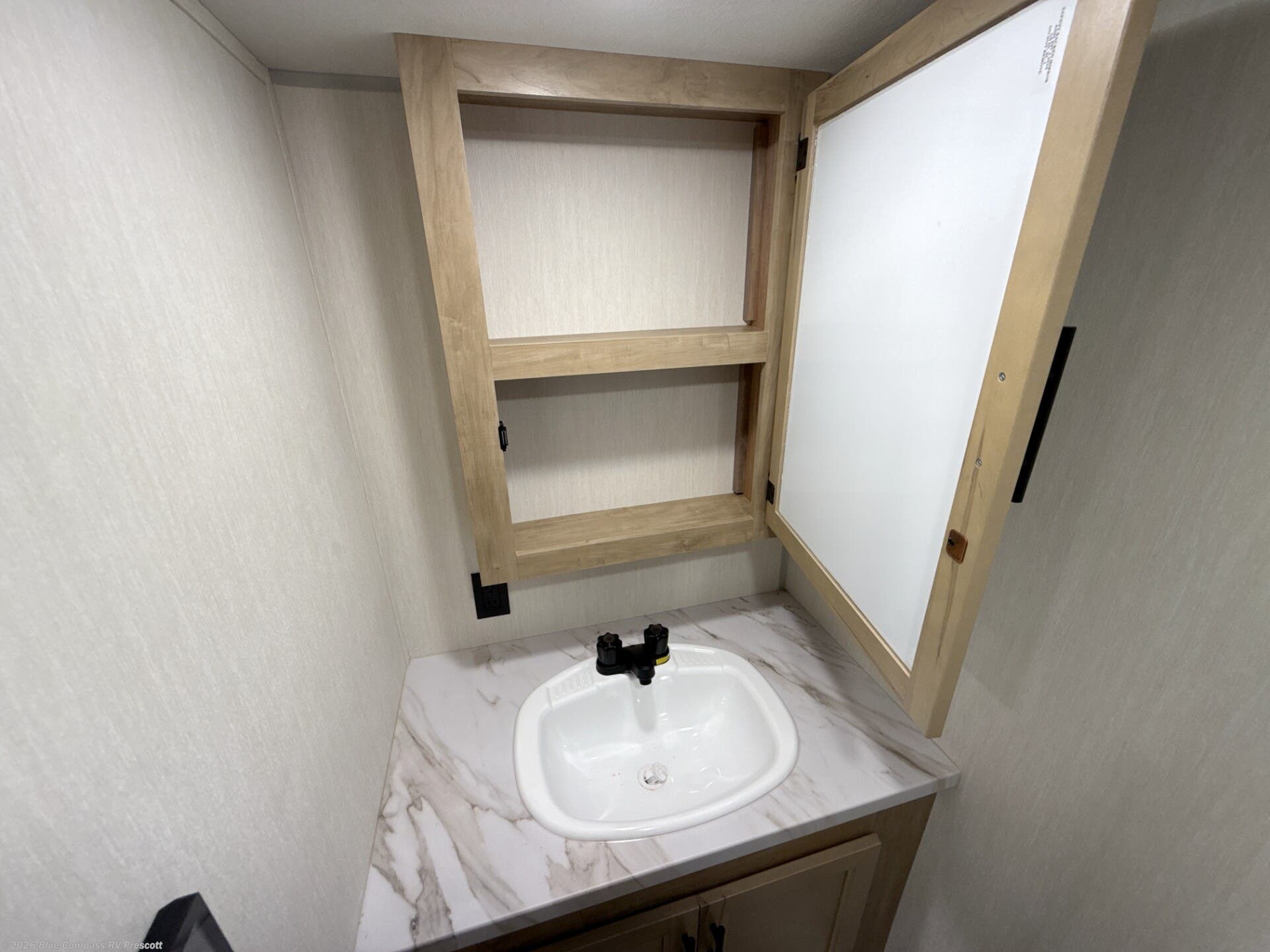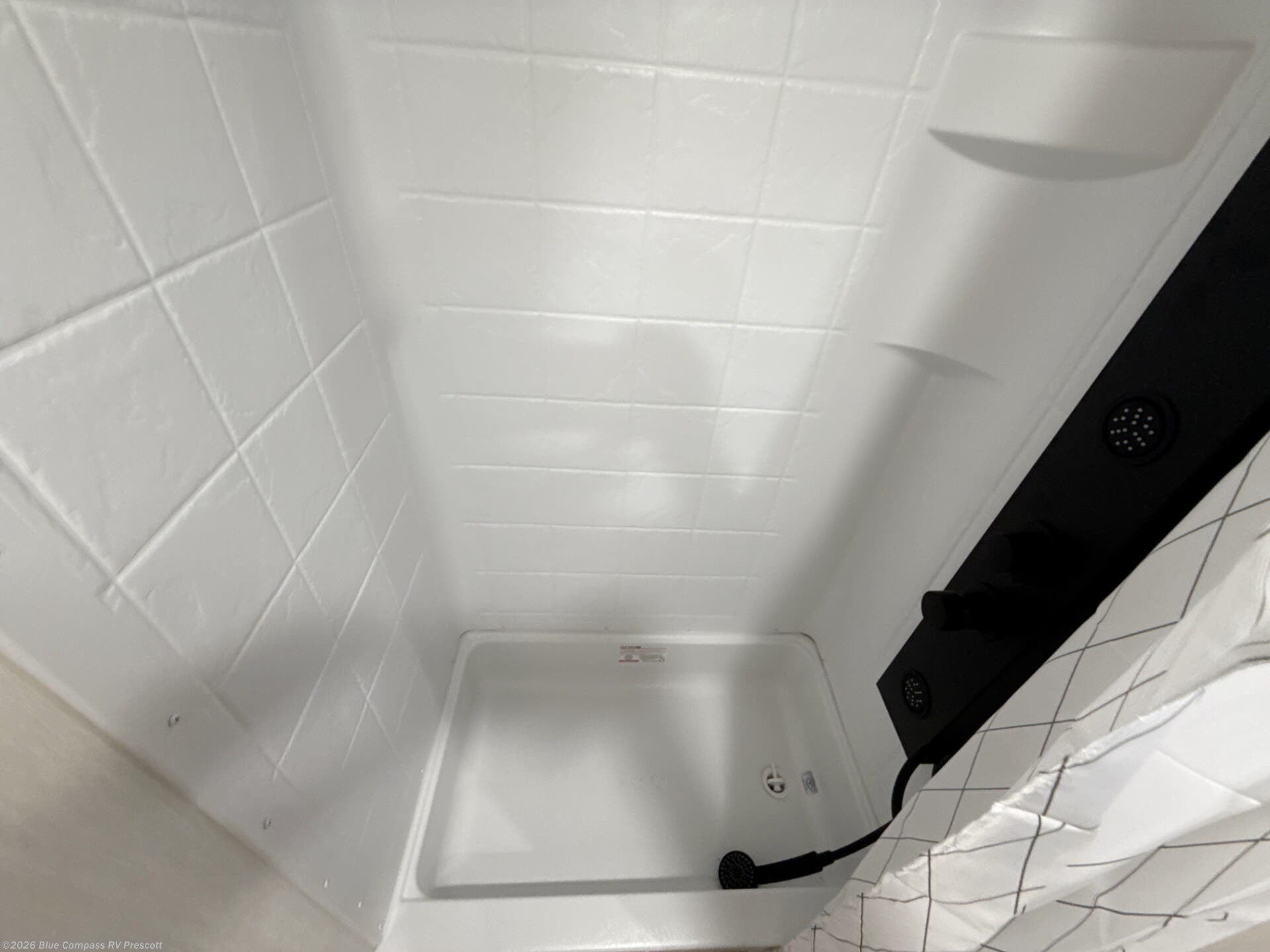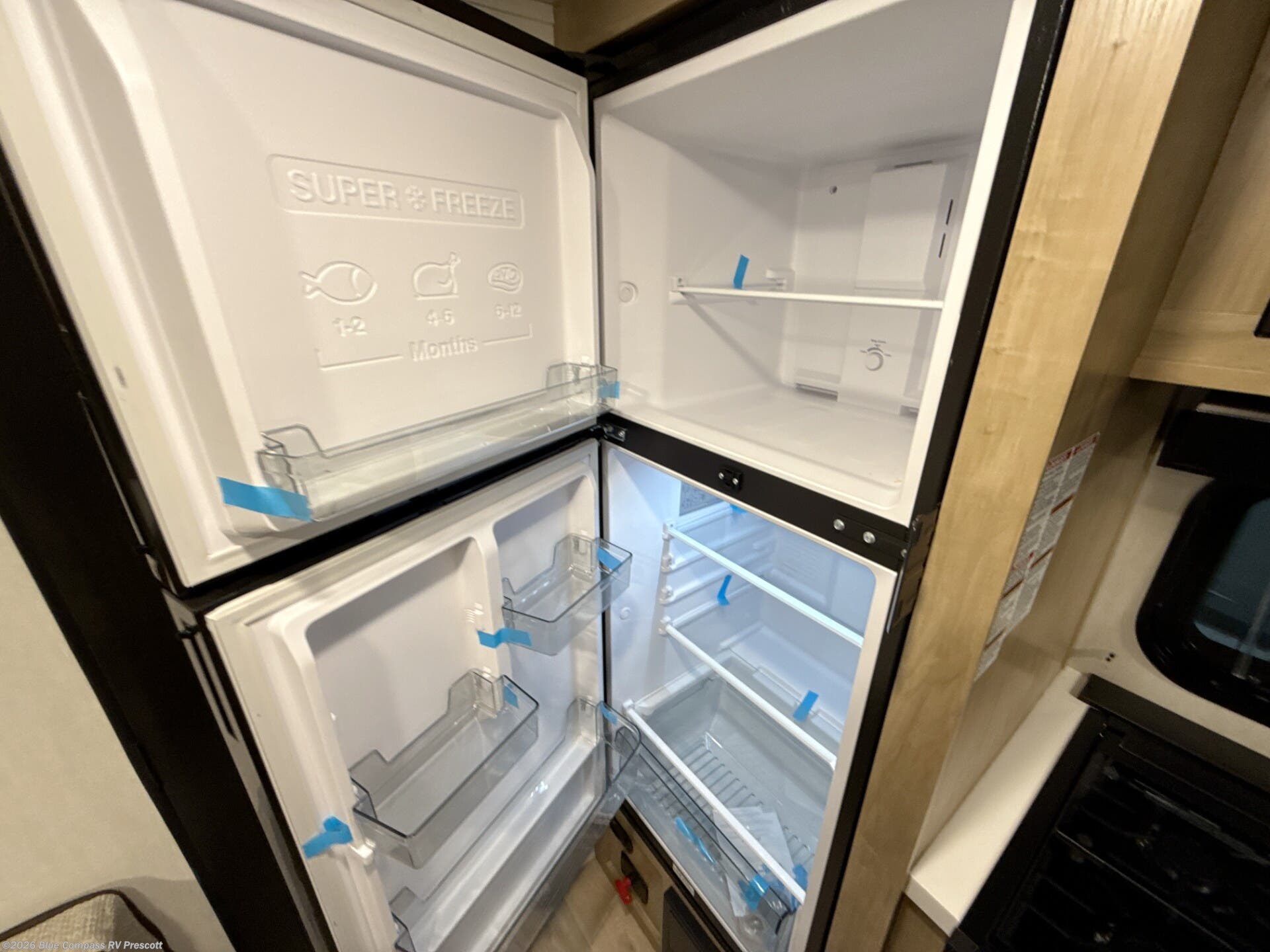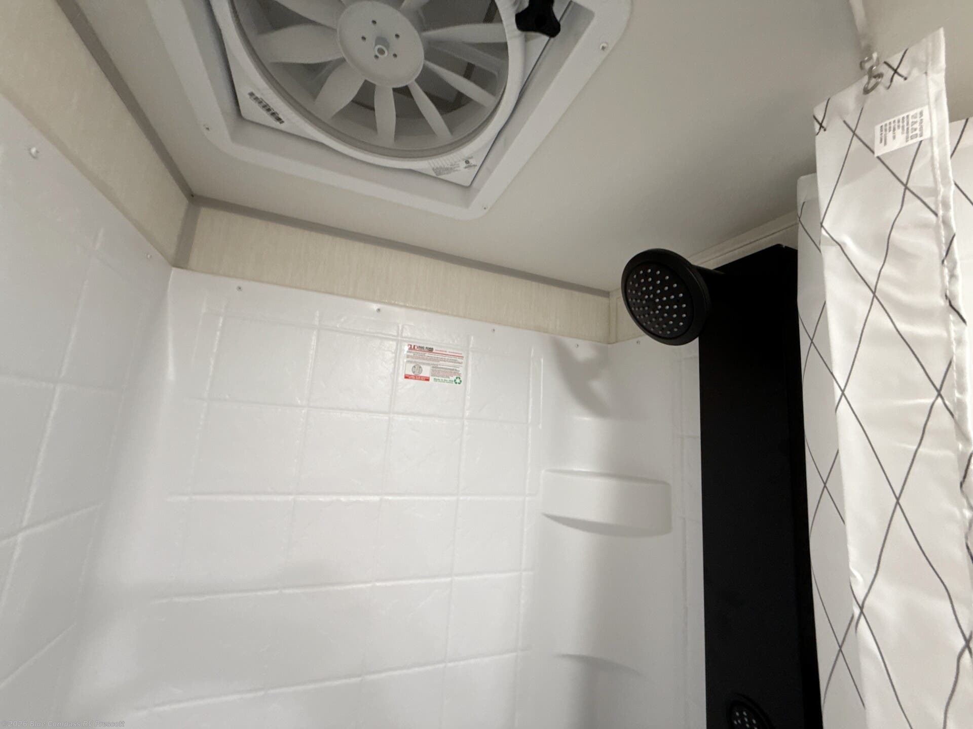 You will love camping in this travel trailer with your own queen bed up front! Freshen up each morning in the full rear bathroom with the tub/shower, toilet, and sink. Fill your bellies with the perishables stored in the 12V high efficiency refrigerator and cook them on the high output cooktop. You could even prepare a meal while breathing in some fresh air at the outside mini kitchen while staying protected by the 12' power awning. Easily store all of your outdoor gear in the outside storage area too!