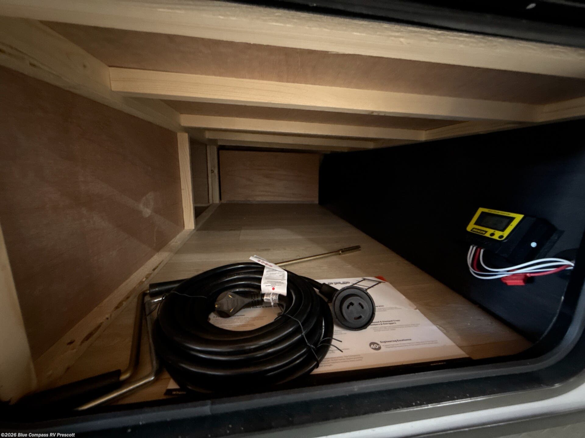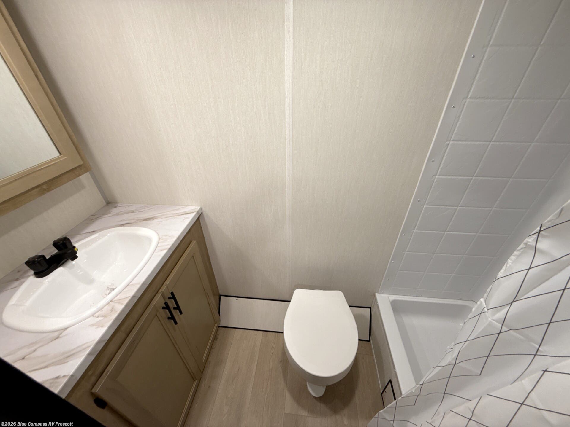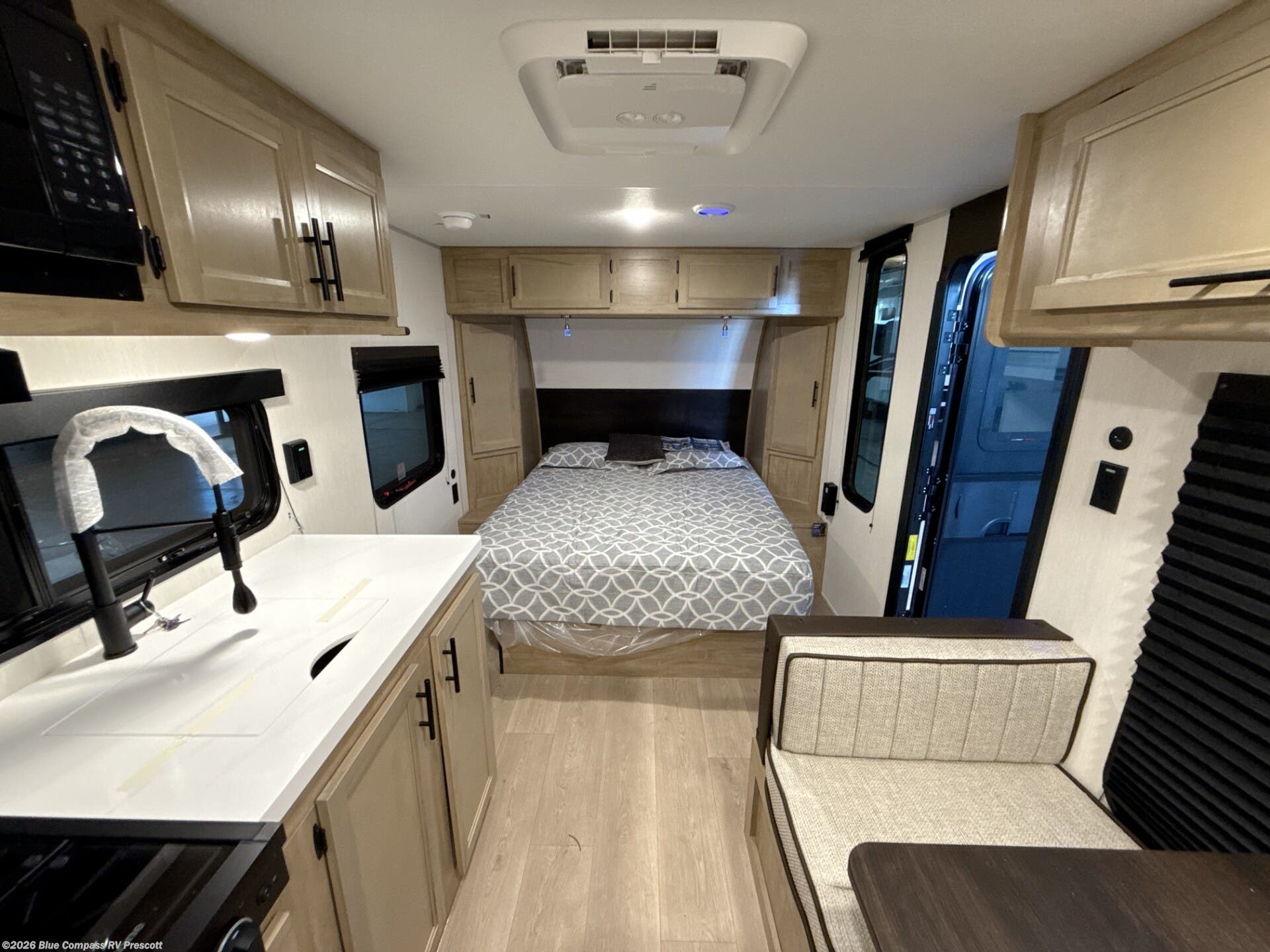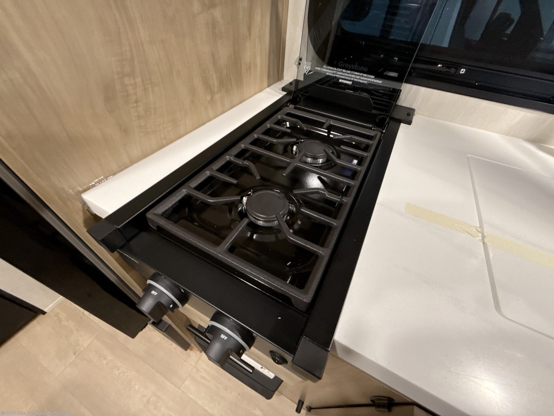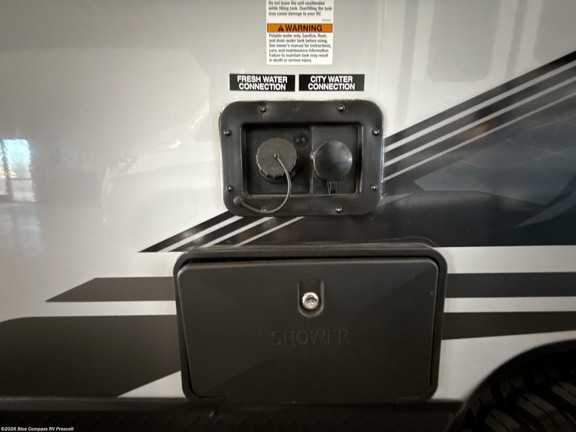 You will love camping in this travel trailer with your own queen bed up front! Freshen up each morning in the full rear bathroom with the tub/shower, toilet, and sink. Fill your bellies with the perishables stored in the 12V high efficiency refrigerator and cook them on the high output cooktop. You could even prepare a meal while breathing in some fresh air at the outside mini kitchen while staying protected by the 12' power awning. Easily store all of your outdoor gear in the outside storage area too!