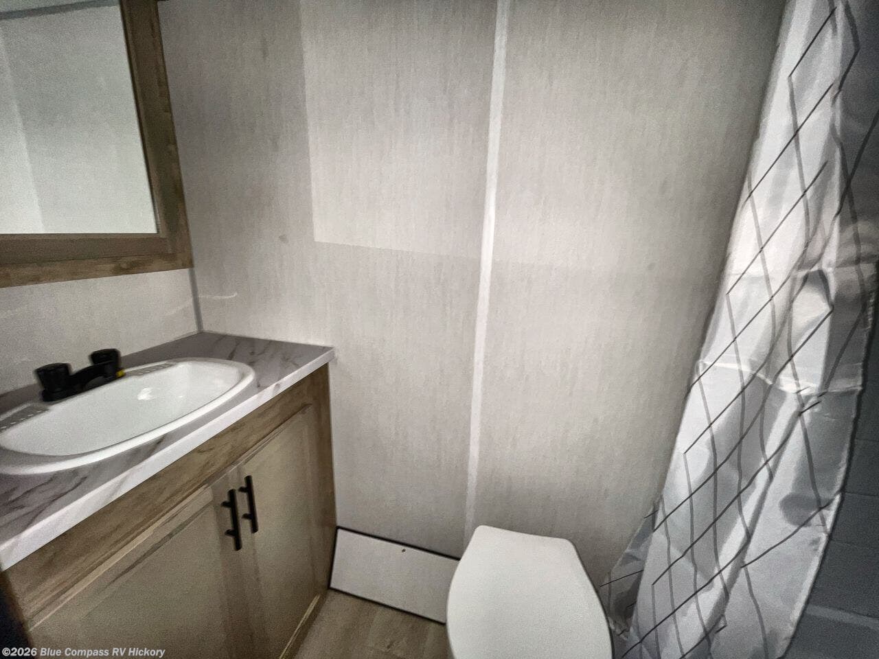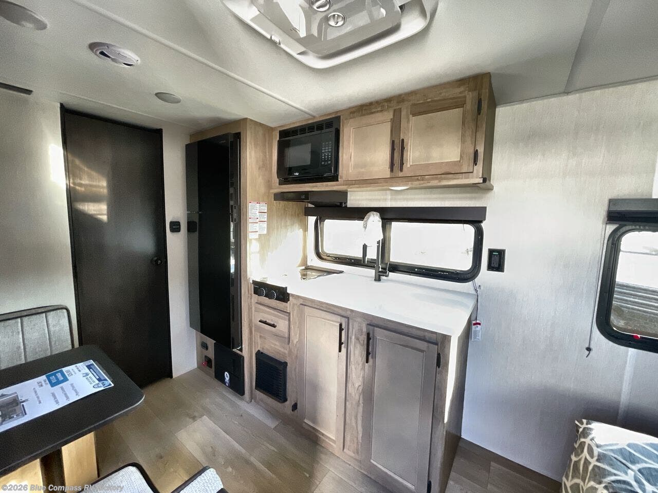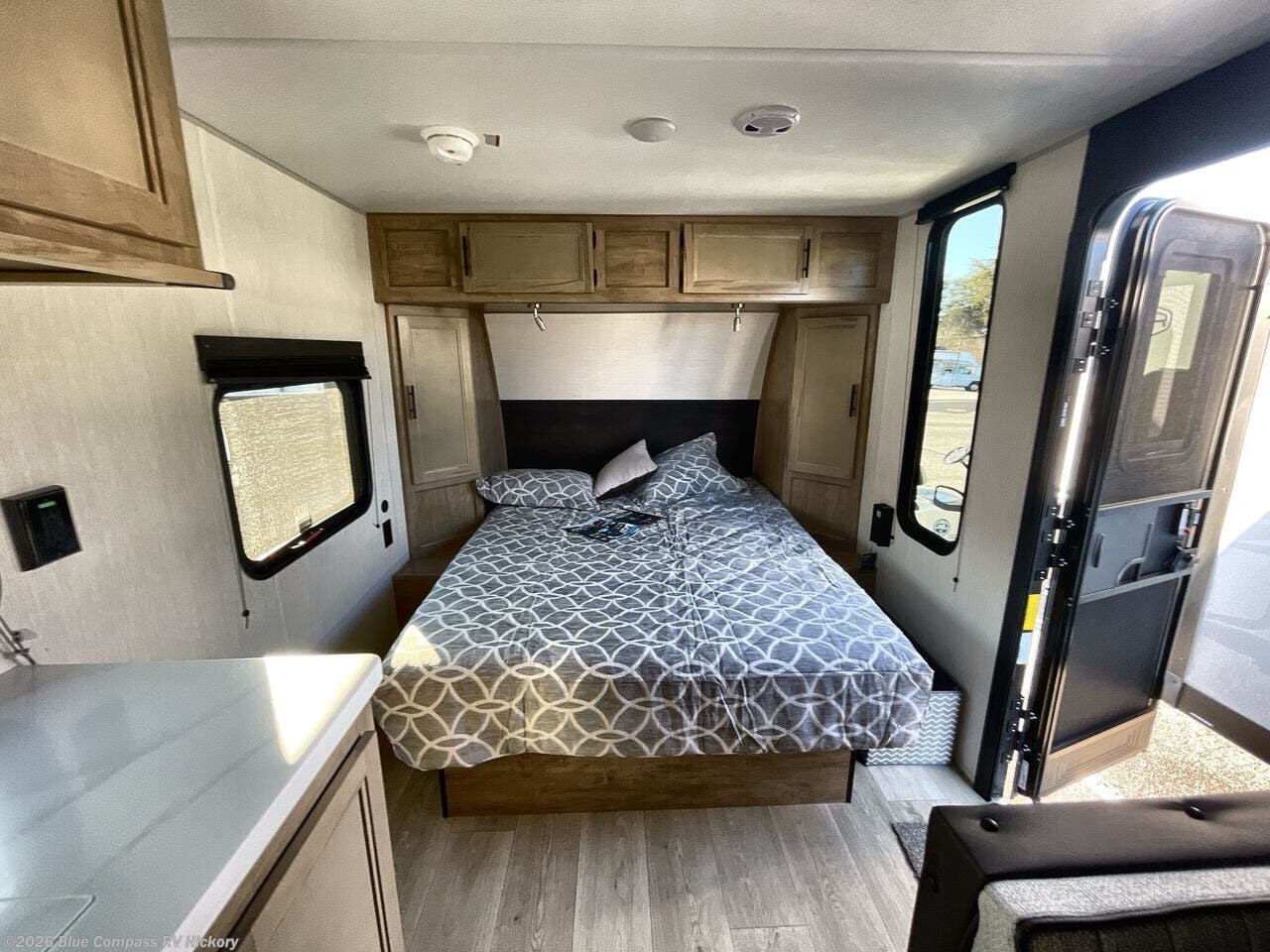 You will love camping in this travel trailer with your own queen bed up front! Freshen up each morning in the full rear bathroom with the tub/shower, toilet, and sink. Fill your bellies with the perishables stored in the 12V high efficiency refrigerator and cook them on the high output cooktop. You could even prepare a meal while breathing in some fresh air at the outside mini kitchen while staying protected by the 12' power awning. Easily store all of your outdoor gear in the outside storage area too!