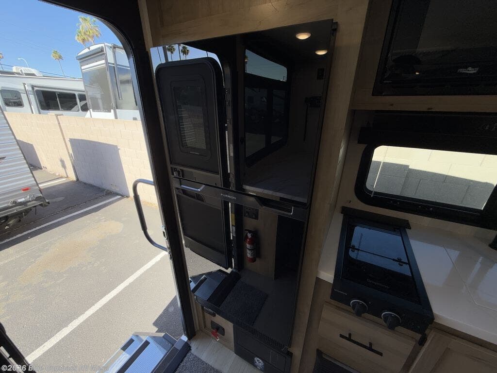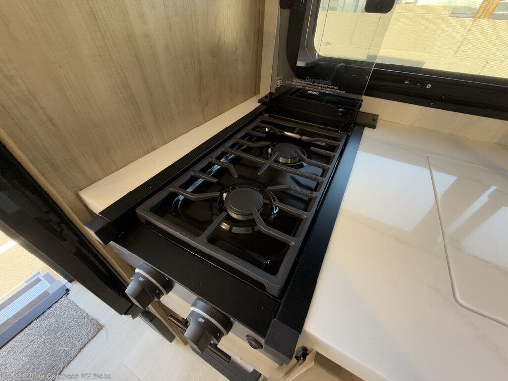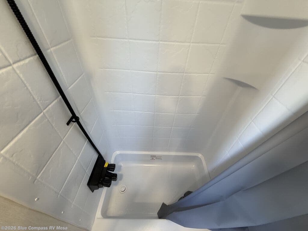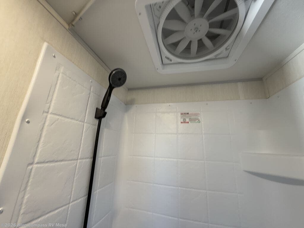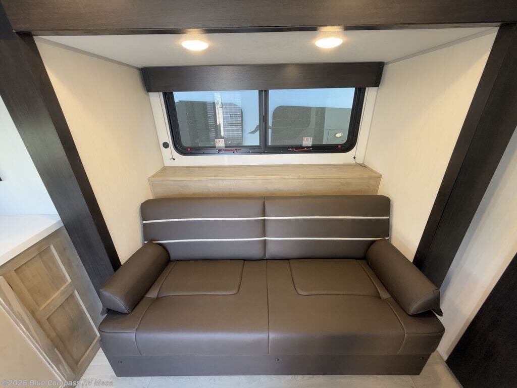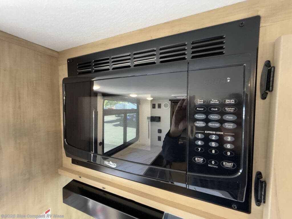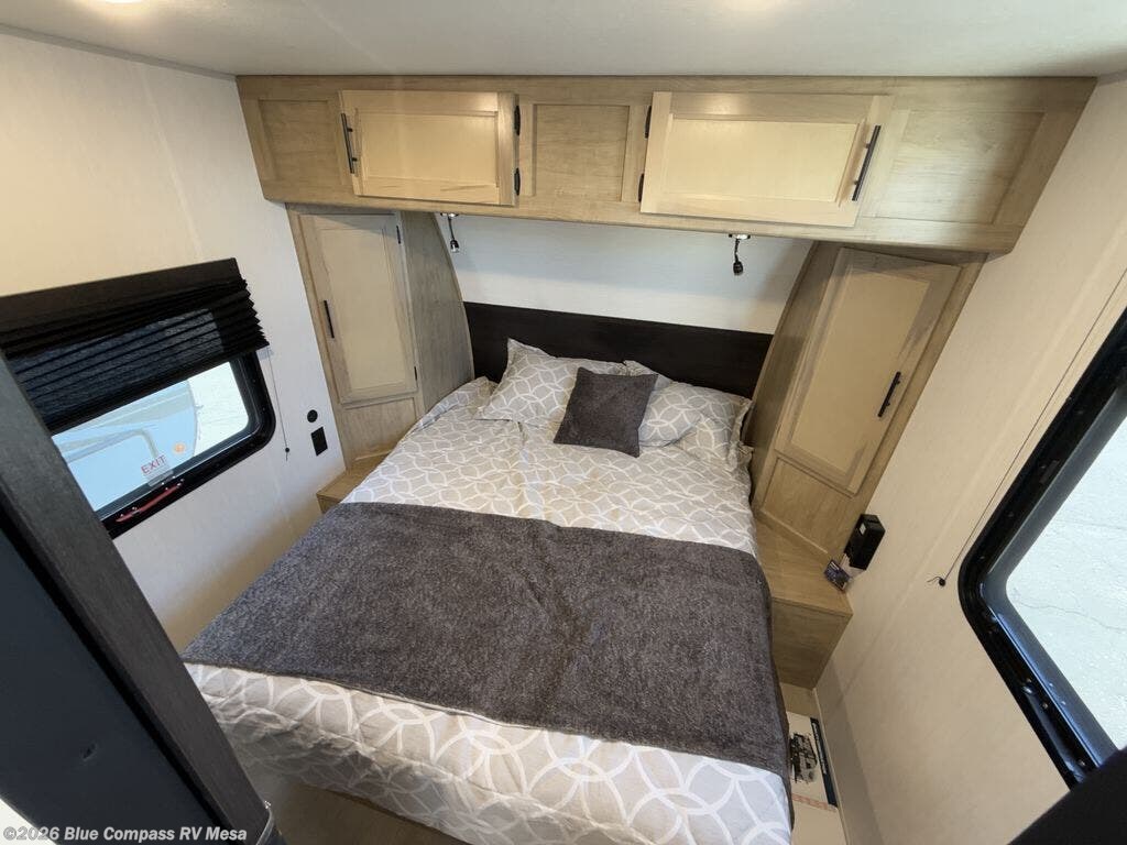 Convenient camping is found with this lightweight travel trailer! Once you arrive at your destination, put out the power awning, then make lunch on the exterior mini kitchen. Inside, you can dine at the bar top with stools, freshen up in the tub/shower, and sleep soundly on the queen bed in the master bedroom. There is also a sofa slide out to provide additional seating, sleeping, and interior space! And you're sure to find plenty of storage spaces both inside and outside, including a rear storage rack!